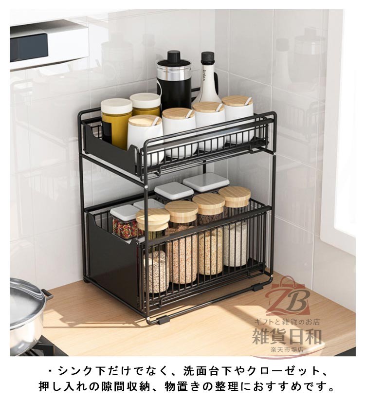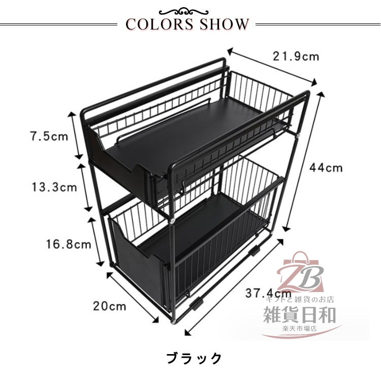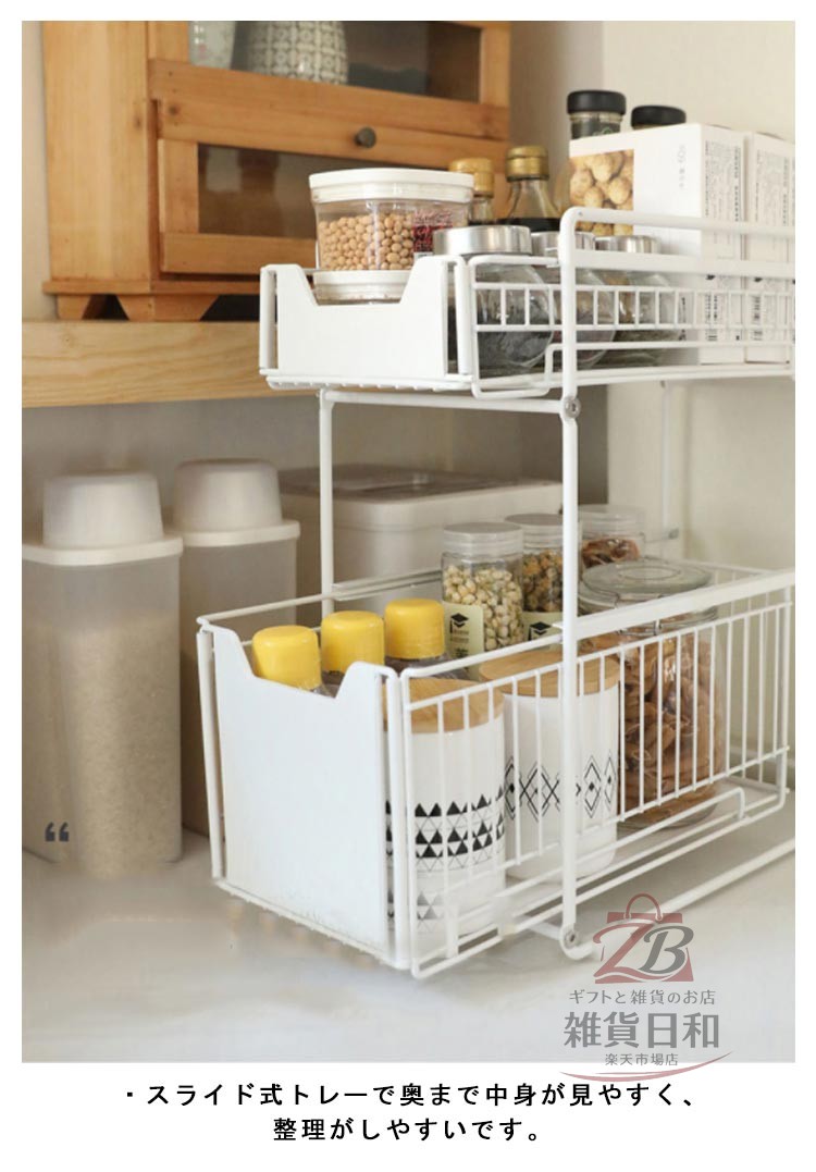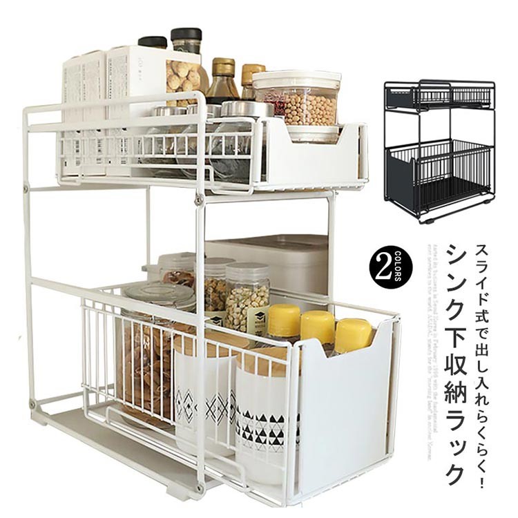 シンク下収納 スライドラック 引き出し ホワイト ブラック
