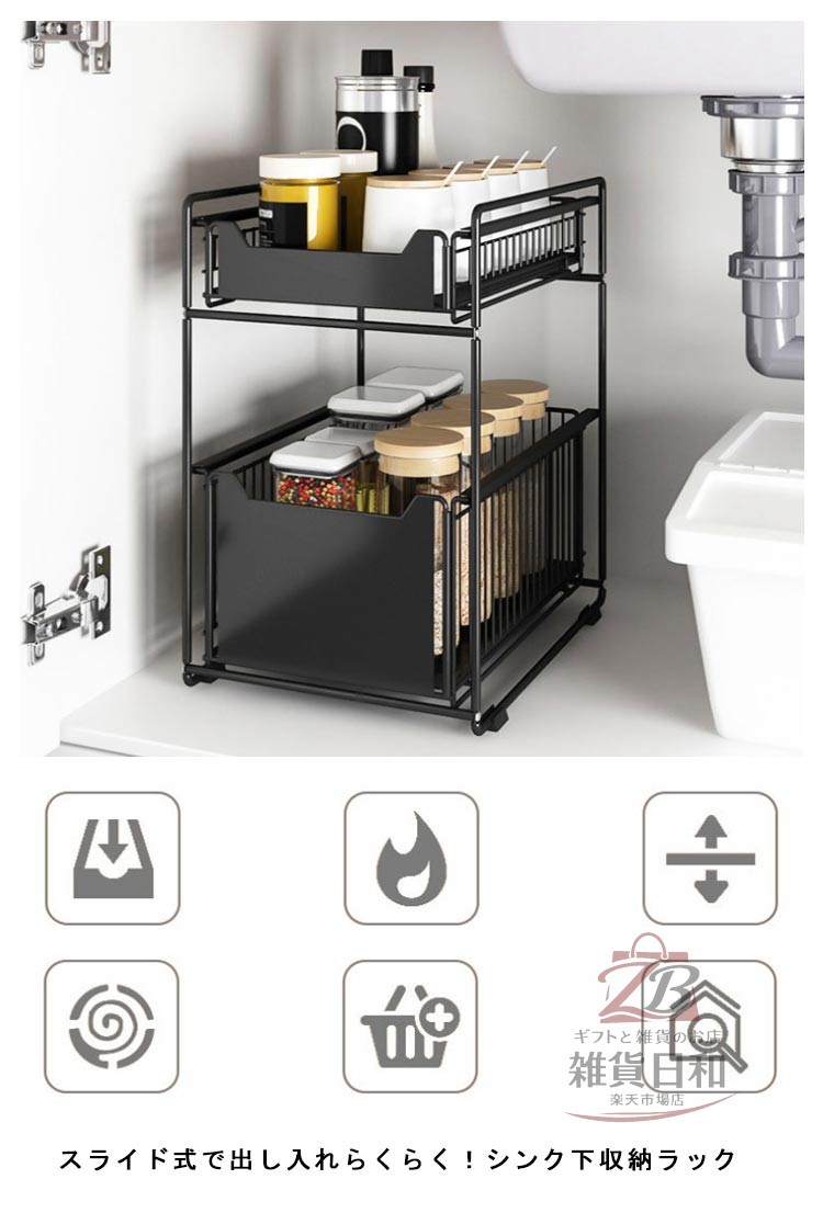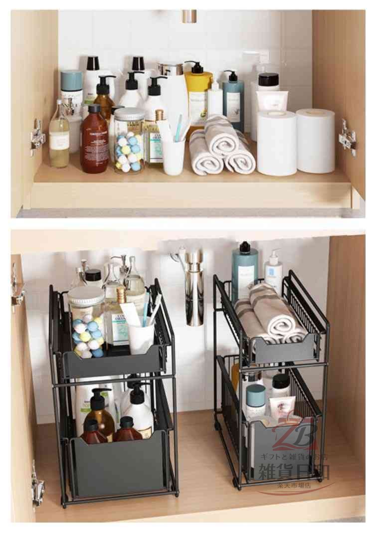 スライド式で出し入れらくらく!シンク下収納ラック
