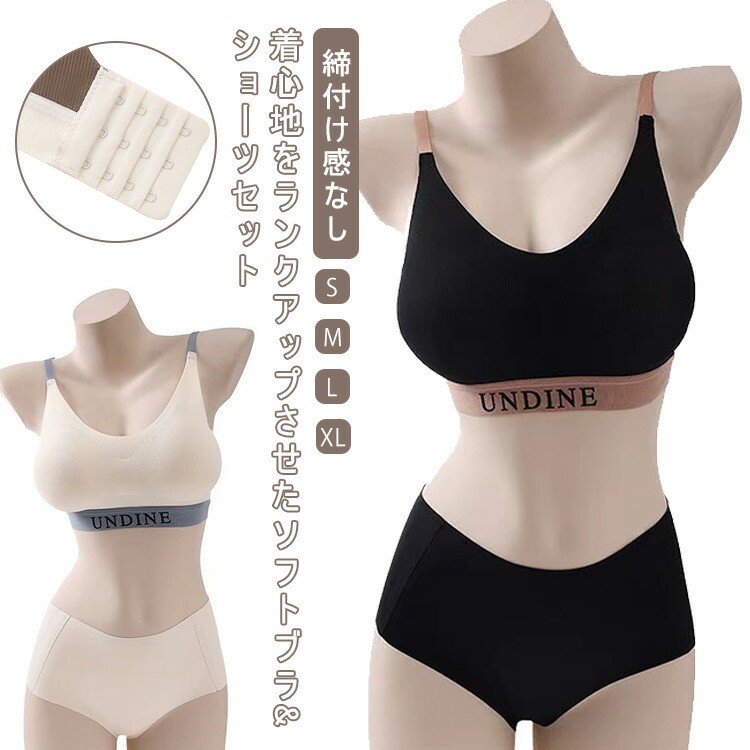 ノンワイヤーブラ ショーツ 上下セット レディース 下着 薄手 ぴったりフィット 締め付け感なし 通気性