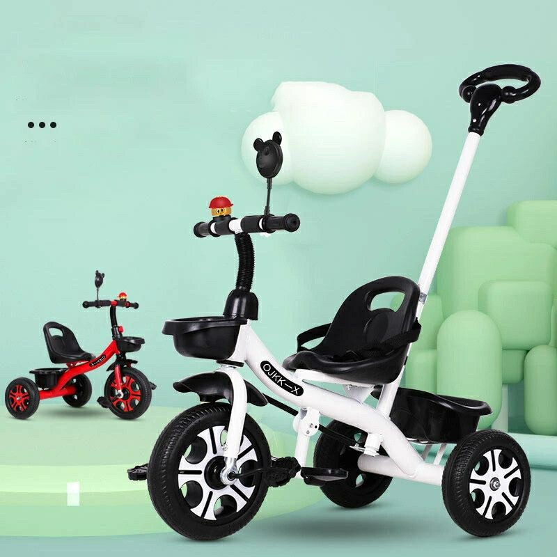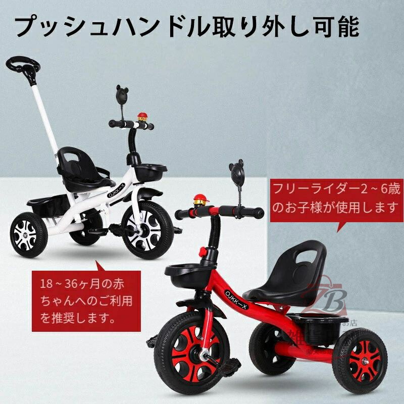 子供用三輪車 ベビーカー 押し棒付き おもちゃ ゲーム 通販 ブラック ホワイト レッド ピンク (押し棒なし) (押し棒付)