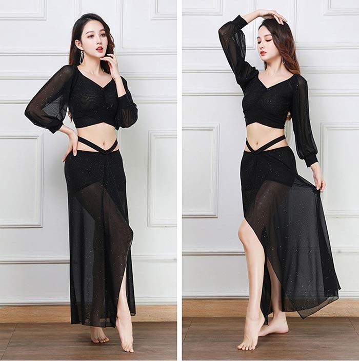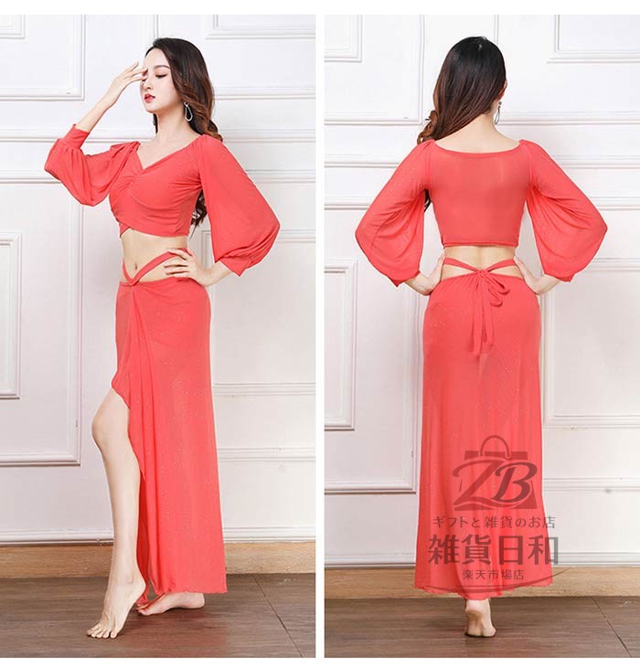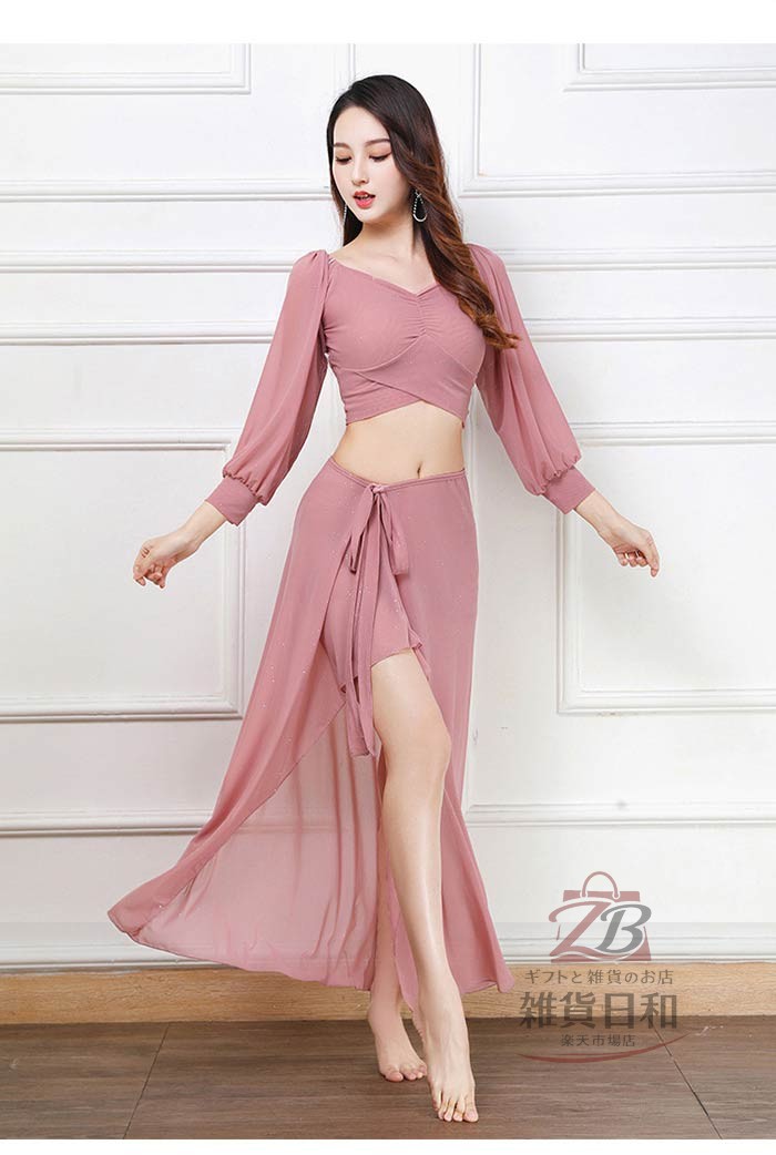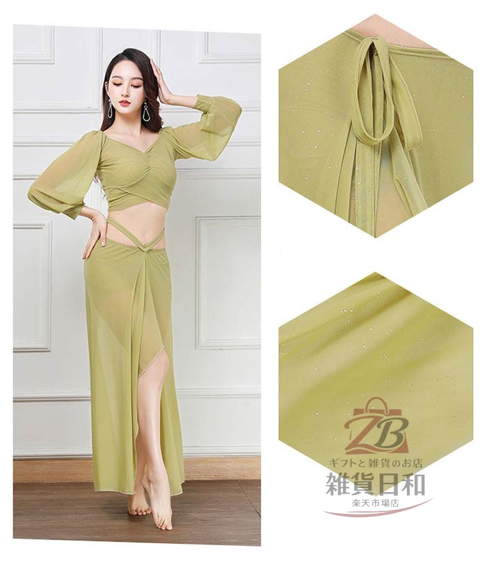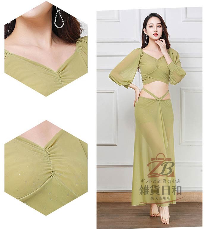 シースルー ベリーダンス 衣装 セットアップ レッスン着 練習着 ヒップスカーフ スカート レッスンウェア 長袖 トップス ダンス レディース キラキラ 社交ダンス ステージ衣装 大きいサイズ
