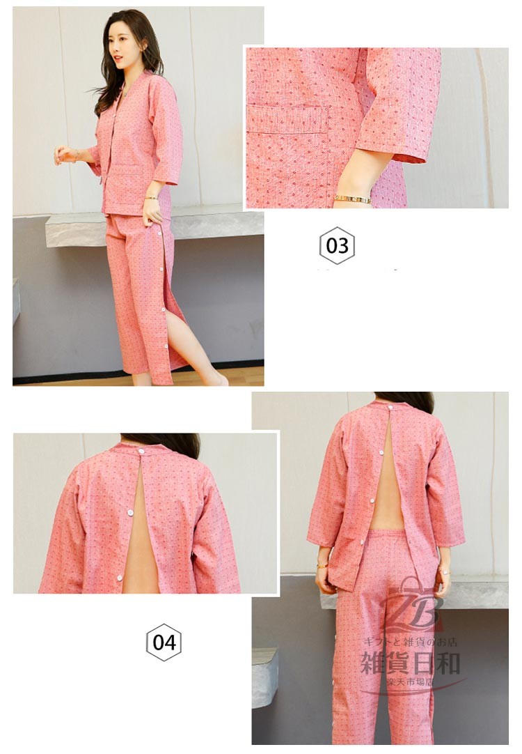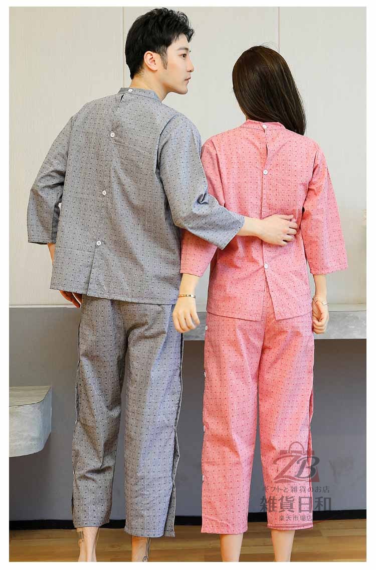 サロン 治療 綿 服 レディース リラックスウェア 鍼灸 患者着 メンズ 上下セット ルームウェア サウナ服 パジャマ ゆったり 部屋着 後ろ開き 快適 肌ざわり 前開き
