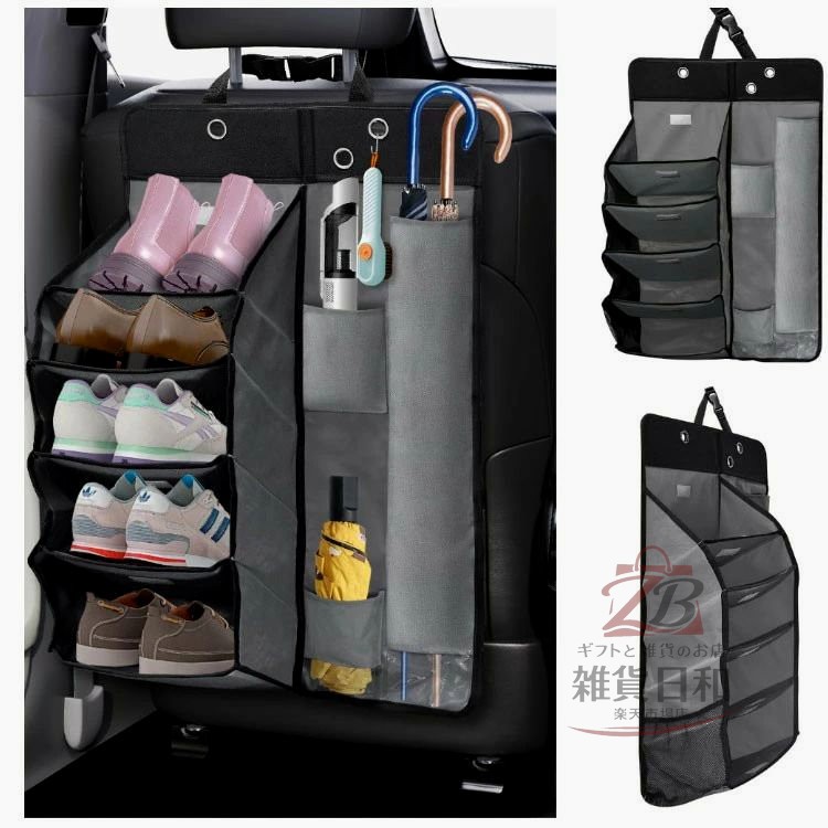 車用シューズラック 傘入れ 5段 折りたたみ式 車内収納整理 ハイエース車 シートポケット 多車種対応
