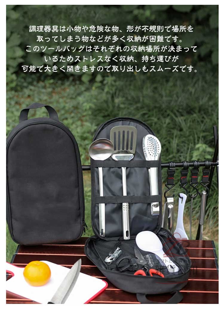 ステンレス キャンプ クッキングツール 9点セット 収納ケース付き アウトドア バーベキュー キッチンツール ソロキャンプ 調理器具