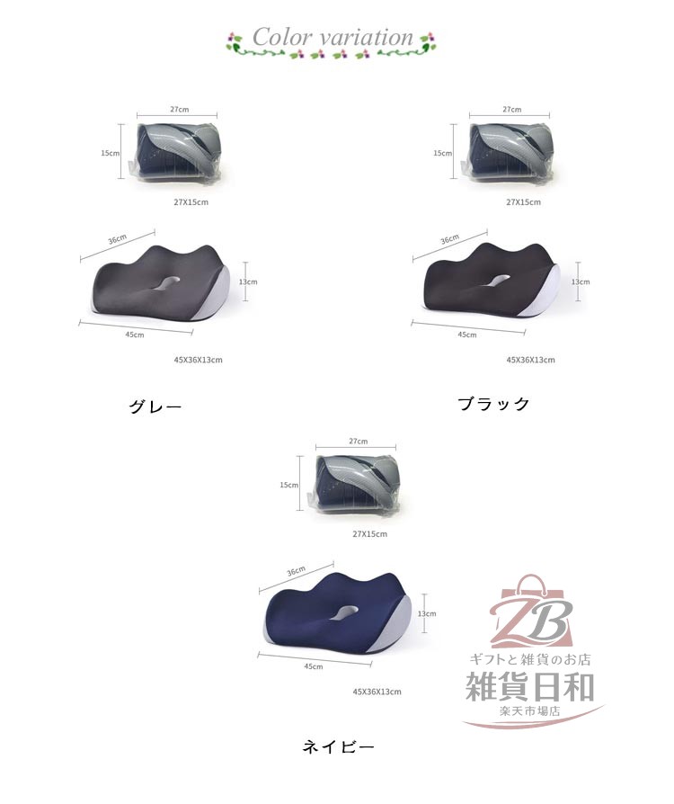 腰痛対策 人間工学 仙骨クッション 低 グレー ブラック ネイビー
