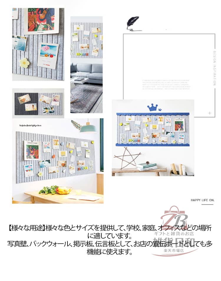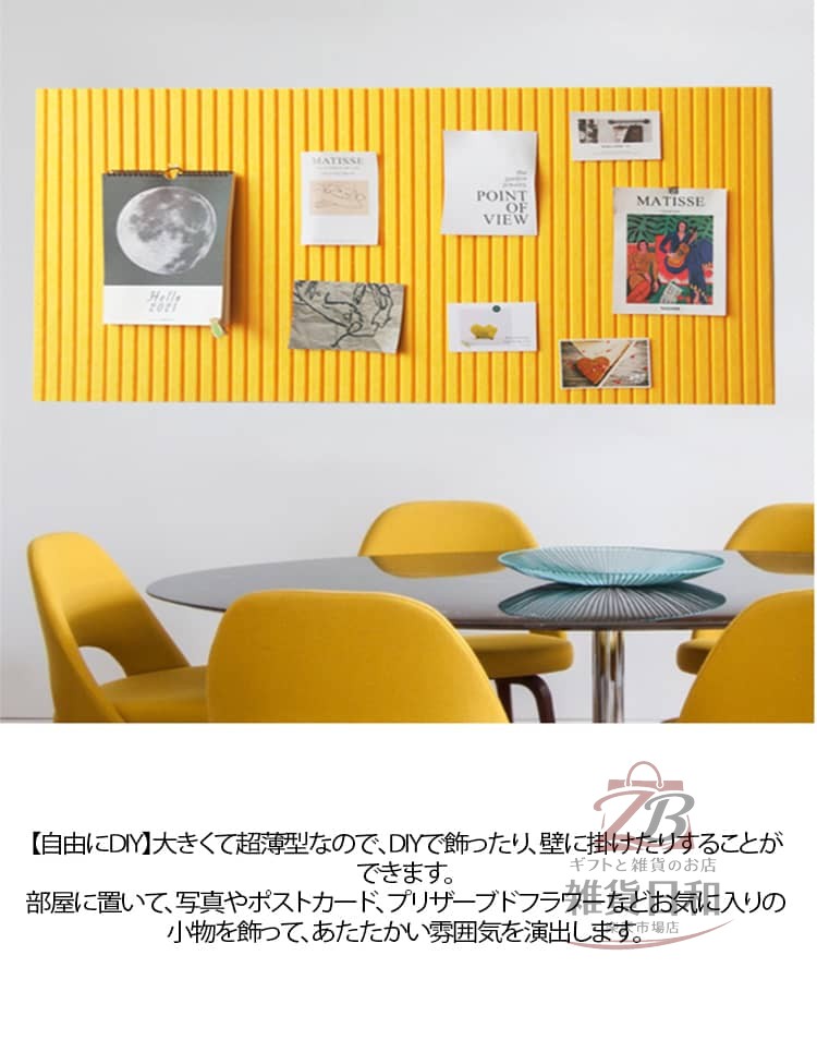 高品質のフェルト素材を採用し、ホルムアルデヒドフリーで安心して使えます。色が豊富で、色あせず、耐摩擦性に優れ、長時間使用できます。一般的な掲示板とは異なり、縦縞になっており、溝に沿って折りたたむことができます。使わないときは、コンパクトに収納して省スペースにします。このフェルトボードは穴を開けずに設置できるので手間も省けます。背中にテープが付いているので、はがして壁に簡単に掛けることができます。大きくて超薄型なので、DIYで飾ったり、壁に掛けたりすることができます。部屋に置いて、写真やポストカード、プリザーブドフラワーなどお気に入りの小物を飾って、あたたかい雰囲気を演出します。様々な色とサイズを提供して、学校、家庭、オフィスなどの場所に適しています。写真壁、バックウォール、掲示板、伝言板として、お店の宣伝ボードとしても多機能に使えます。