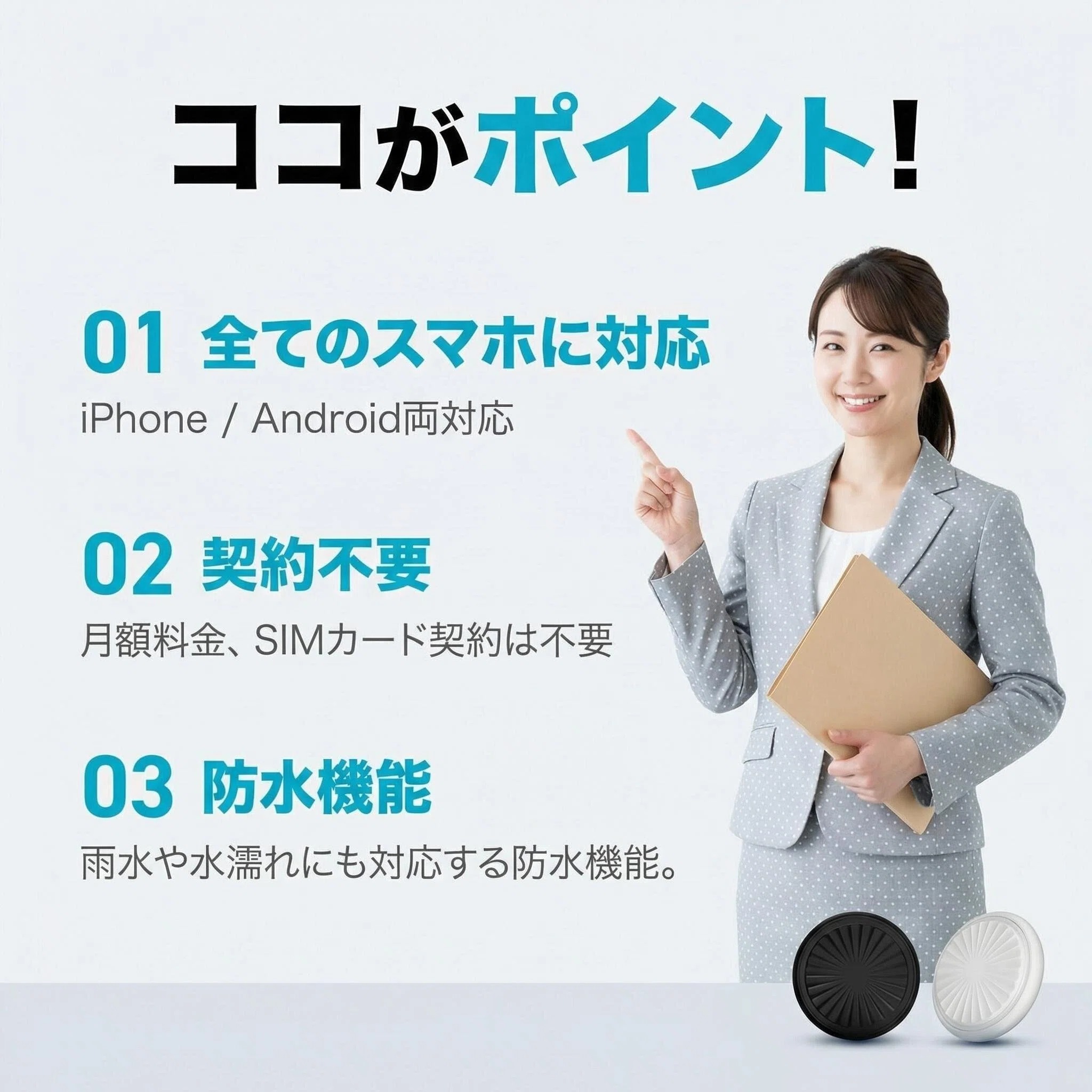 広範囲での通信・検索に対応し、離れた場所でも紛失物の場所を特定しやすくなっています。