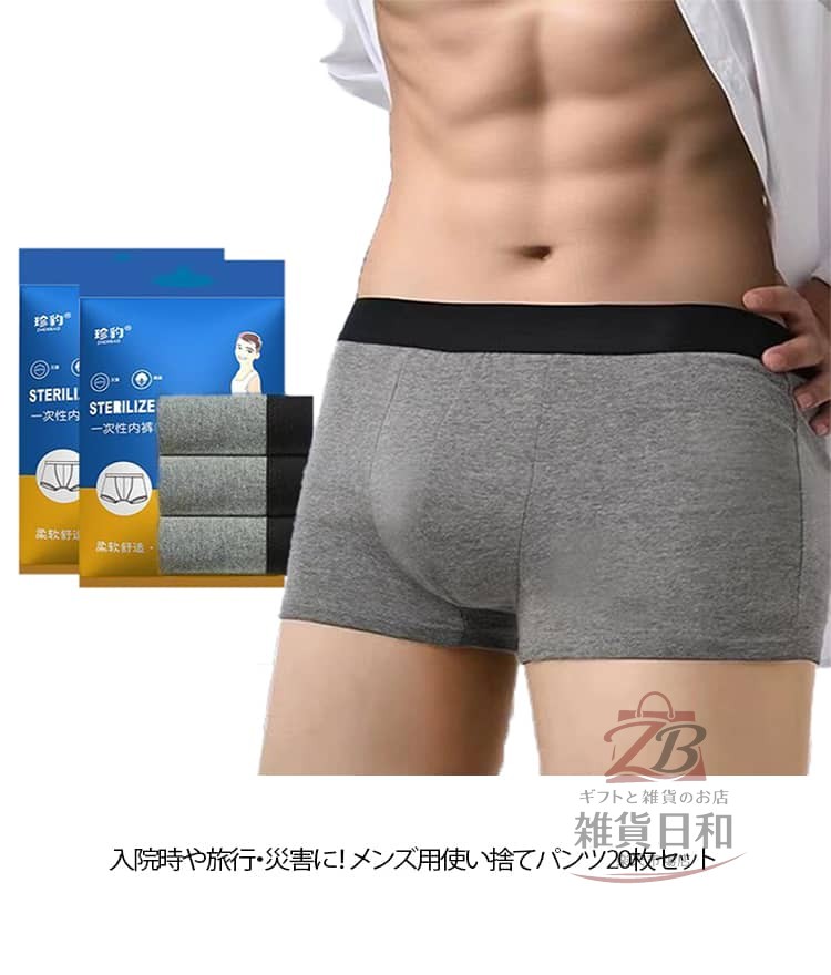 メンズ 使い捨てパンツ 20枚セット ボクサーパンツ 男性用下着 個別包装 旅行 入院 介護 防災 備蓄 快適 滅菌 非常用