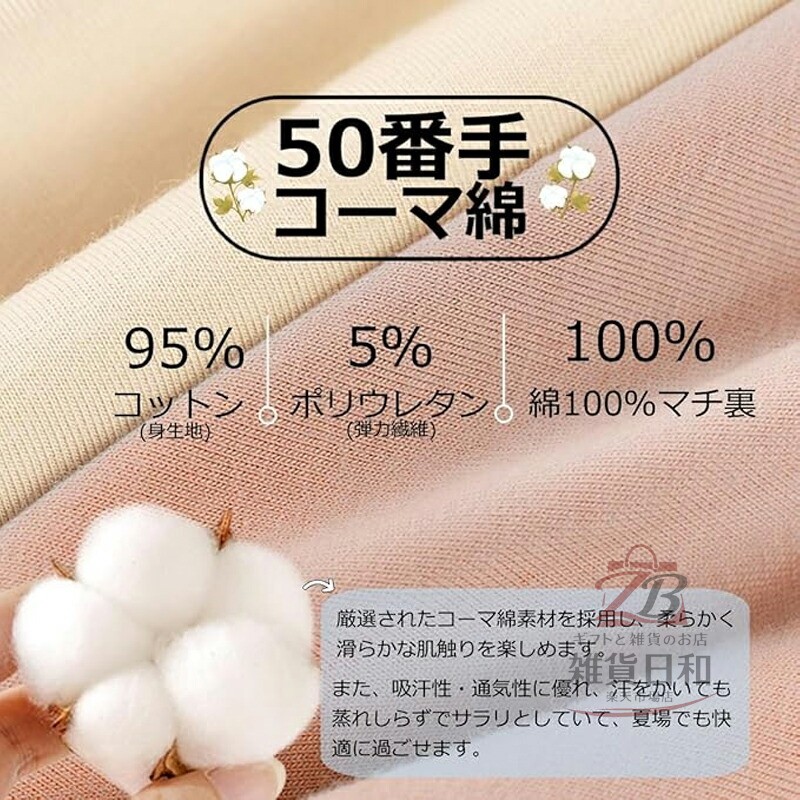 素材:95%綿+5%スパンデックス。サイズ:M(ヒップ82-90cm)、L(ヒップ87-95cm)、XL/LL(ヒップ92-100cm)。