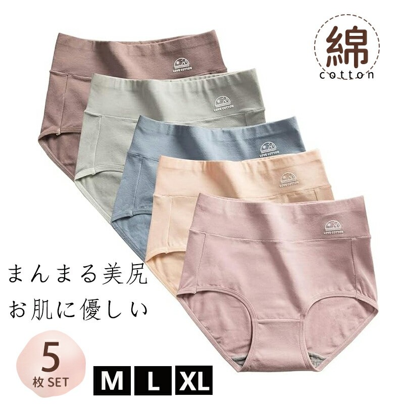 敏感肌対応 綿100% レディースショーツ 5枚組 深履き 柔らか 締め付けない 吸汗 お腹すっぽり 美尻 下着 通気性