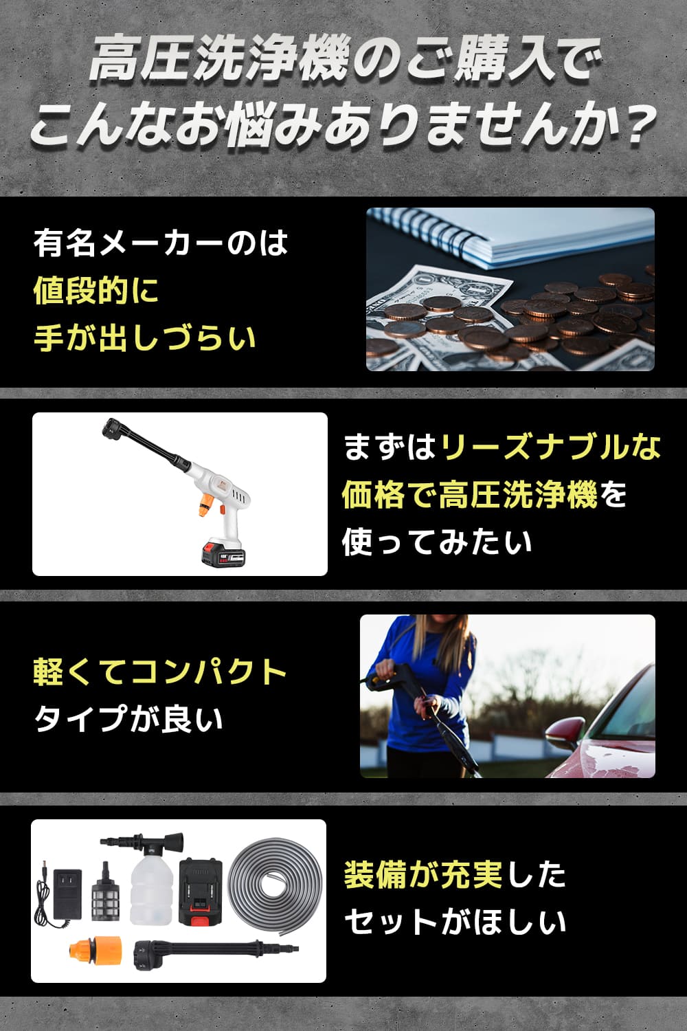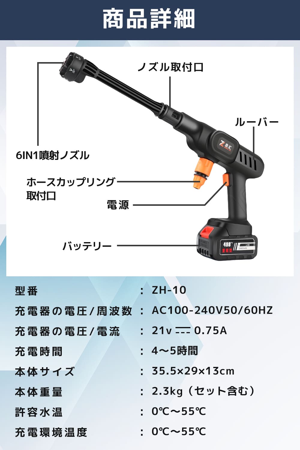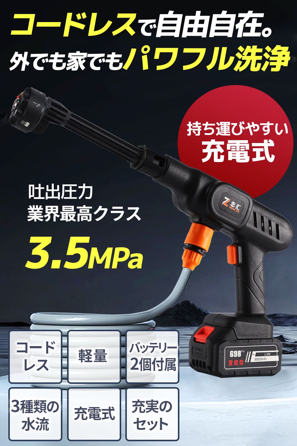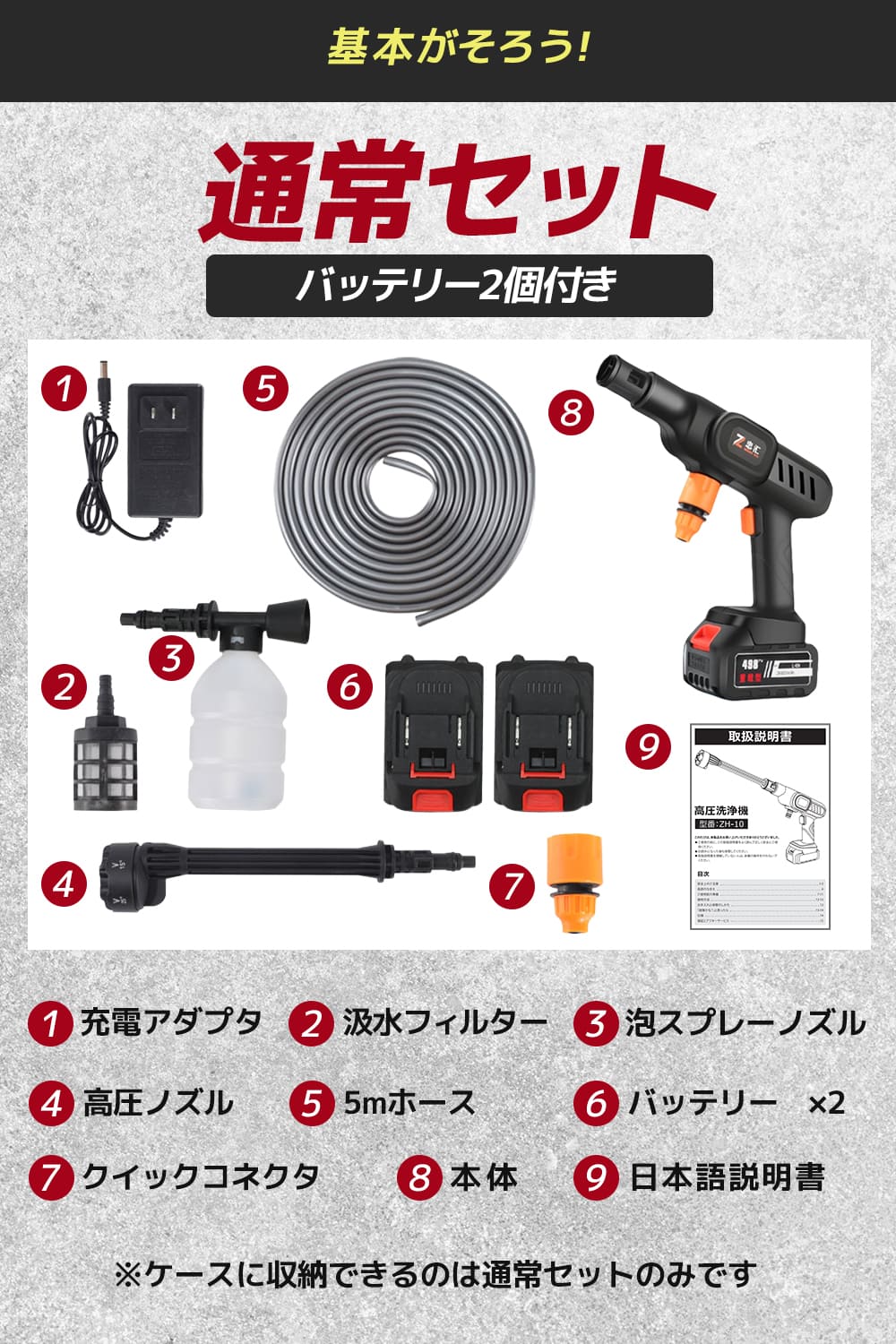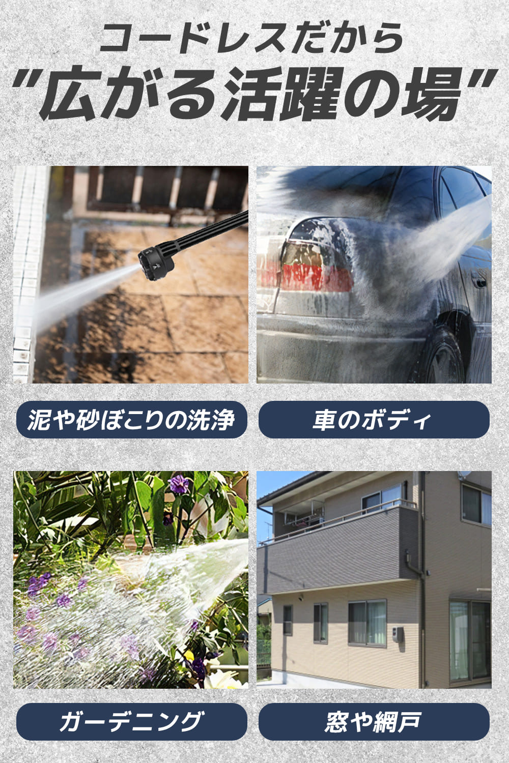 新登場 軽量&コンパクト 10点セット 高圧洗浄機 コードレス 充電式 強力 収納ボックス 付き 大容量バッテリー 日本語取扱説明書付き コンパクト コードレス高圧洗浄機 強力水力噴射