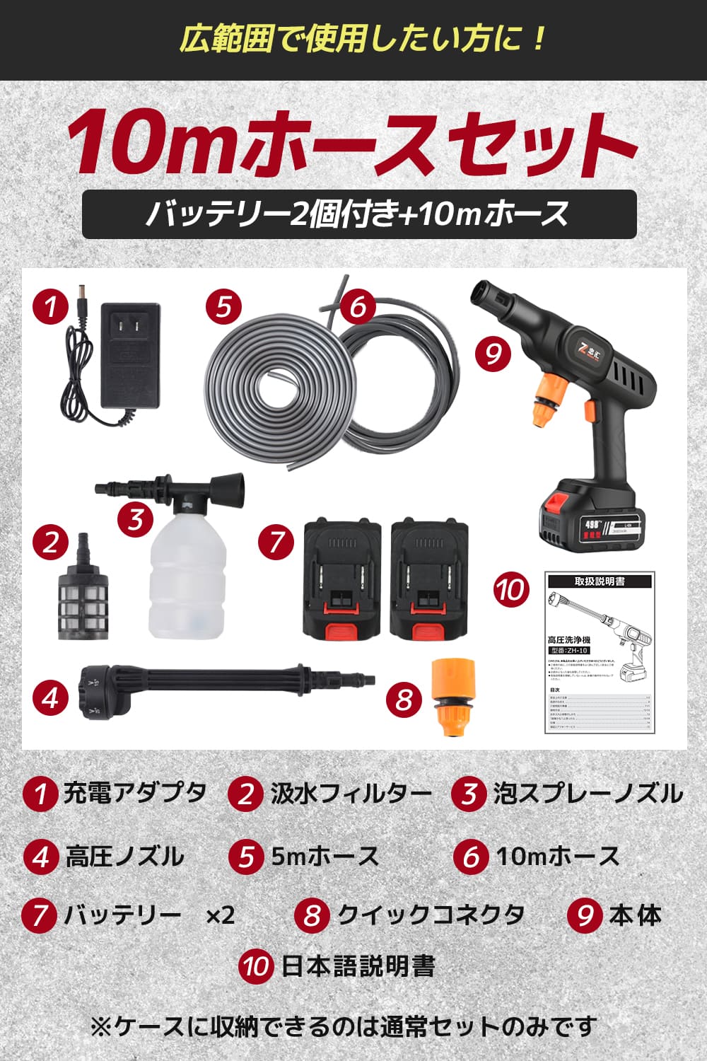 新登場 軽量&コンパクト 10点セット ブラック ホワイト 通常セット(10点セット) 10mホースセット 本体のみ(バッテリーなし)