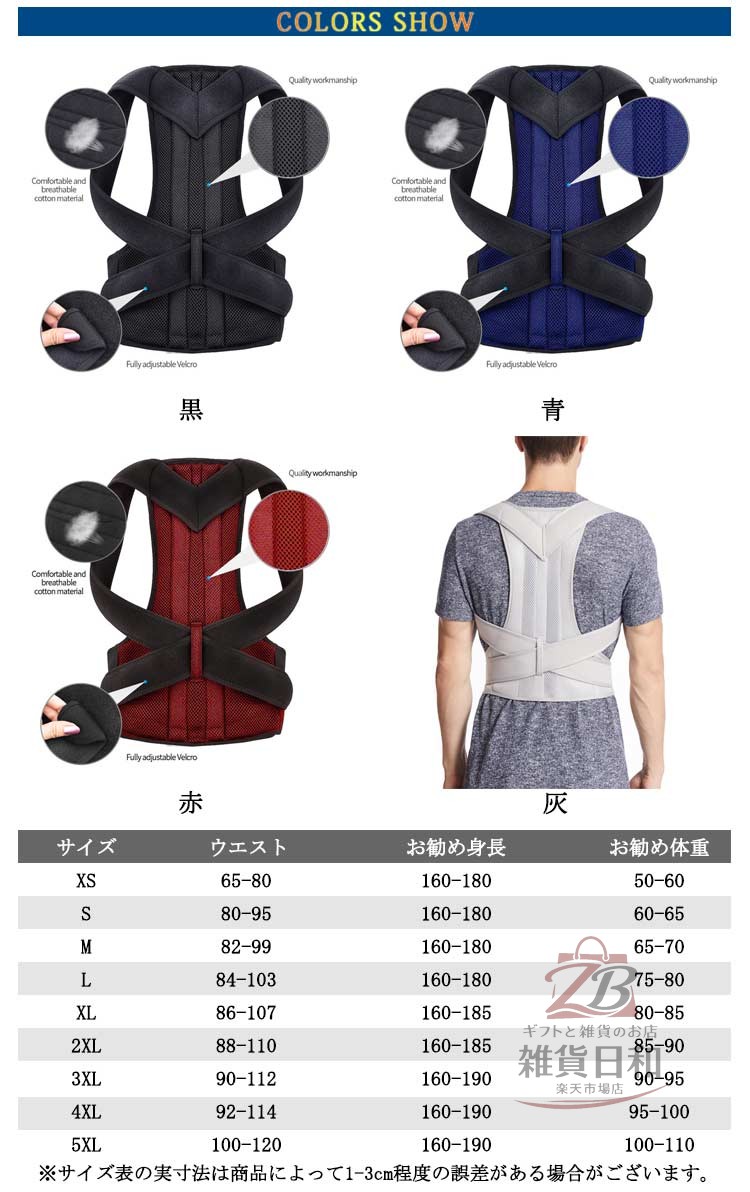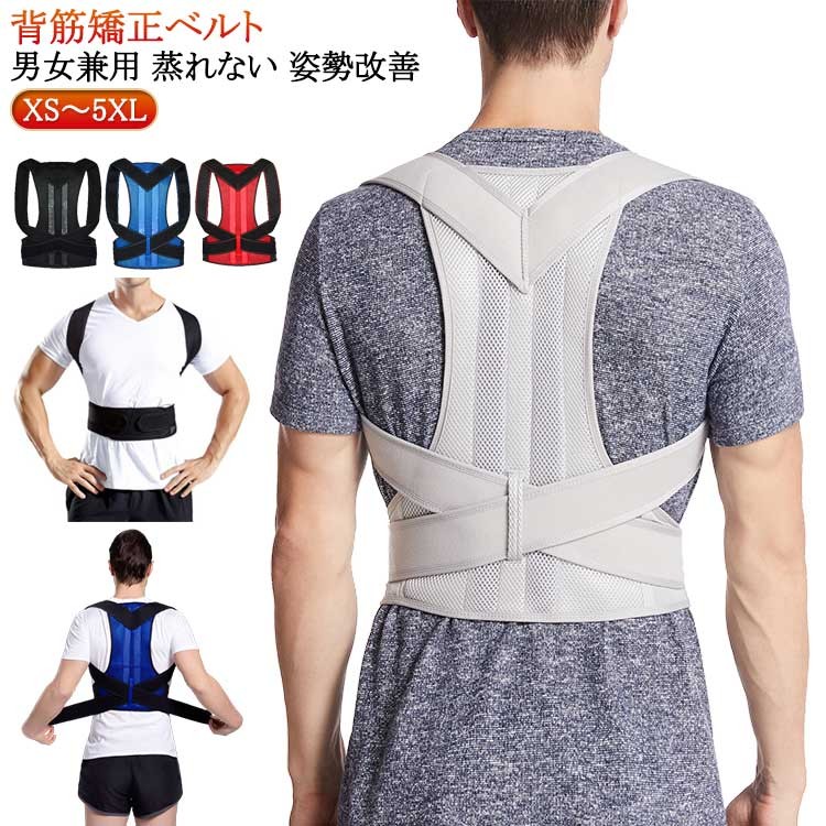 猫背矯正ベルト 姿勢サポーター 男女兼 黒 青 赤 灰 XS S M L XL 2XL 3XL 4XL 5XL