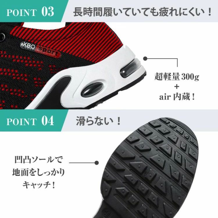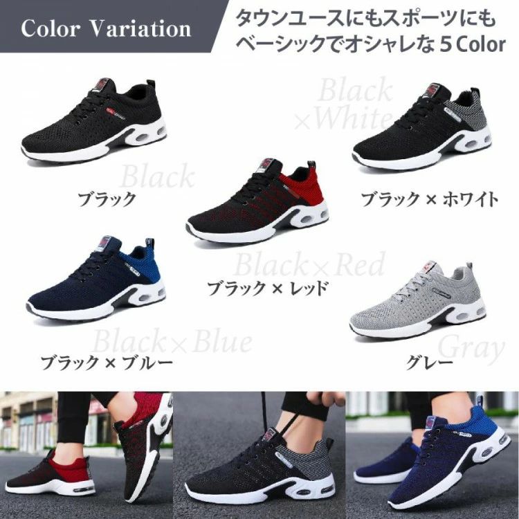 「軽量設計+かかとにはair内蔵で長時間履いていても疲れにくい!凹凸ソールで地面をしっかりキャッチ!滑らない!」充実の機能性だけでなく、通学、通勤、タウンユース、スポーツ、ジム、ウォーキングなど、どんなシーンもスタイリッシュに。