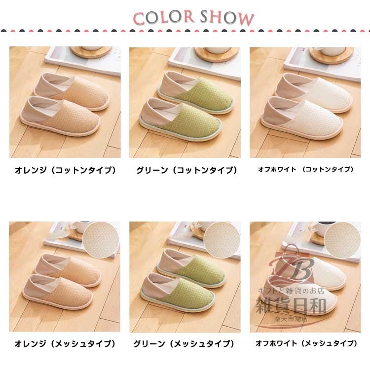 ルームシューズ スリッパ かかと付きス 生活雑貨 スリッパ ルームシューズ ルームシューズ 新登場! オレンジ(コットンタイプ) グリーン(コットンタイプ) オフホワイト (コットンタイプ) オレンジ(メッシュタイプ) グリーン(メッシュタイプ) オフホワイト(メッシュタイプ) XS(22-22.5cm) S(23-23.5cm) M(24-24.5cm) L(25-25.5cm)