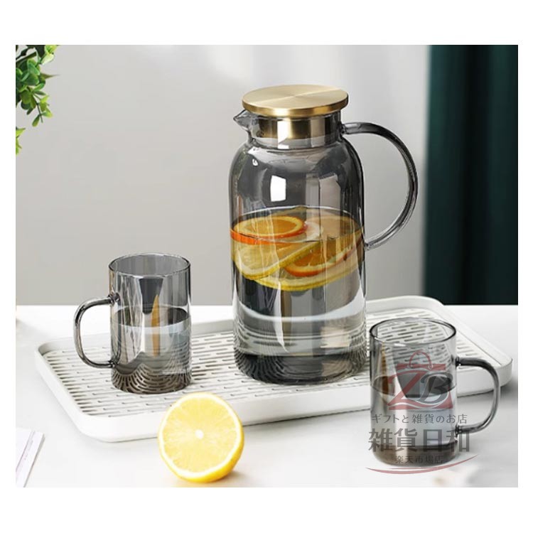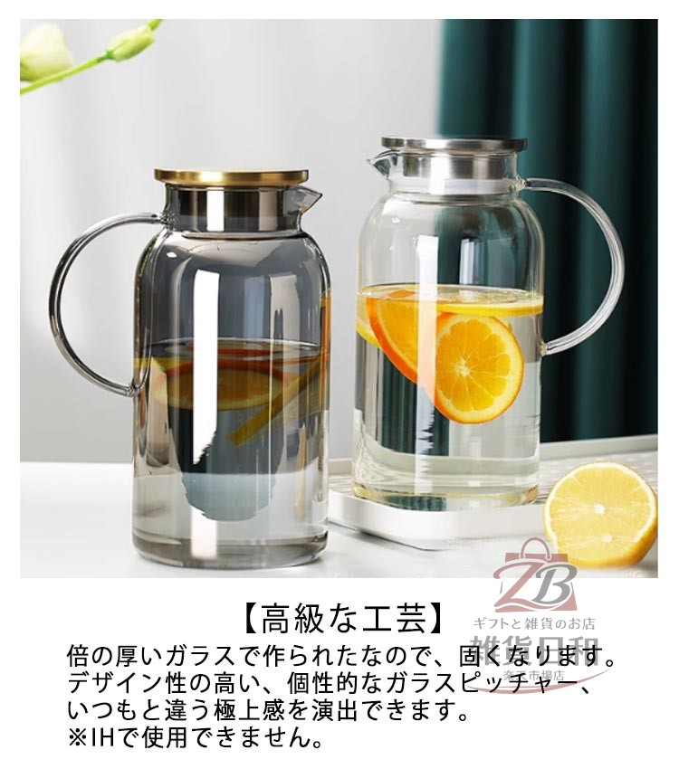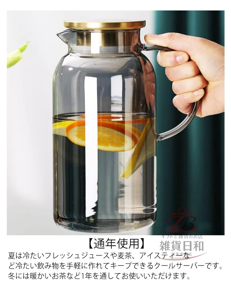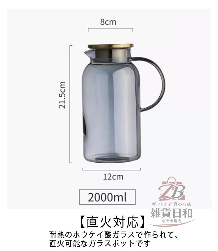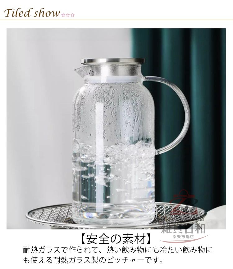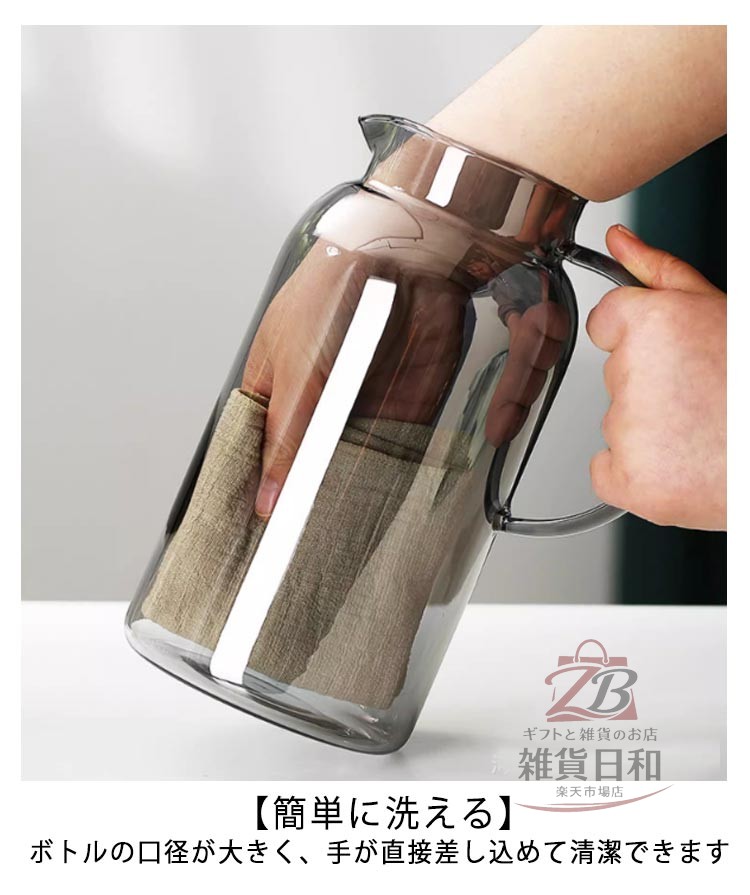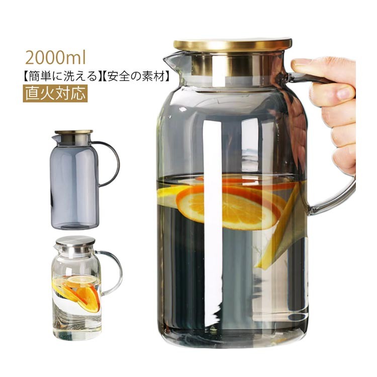 耐熱ガラス 2L 冷水筒 ピッチャー 広口 洗いやすい 取っ手付き ガラス製 冷茶 麦茶 ドリンクポット 直火対応 ホウケイ酸ガラス ジュース