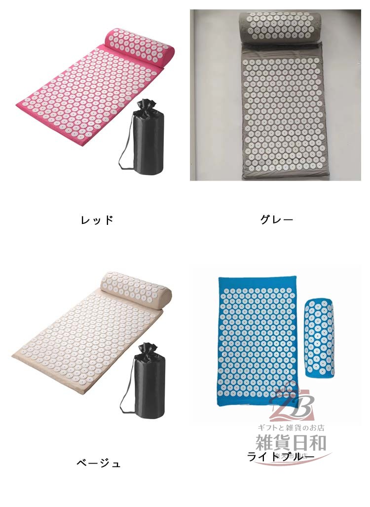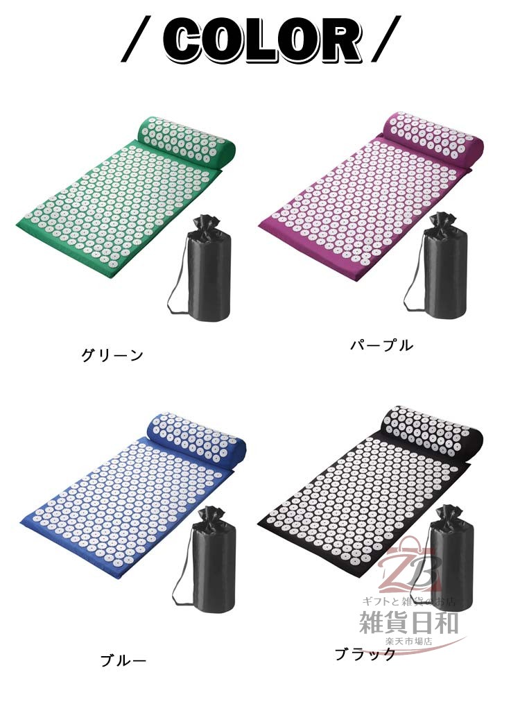指圧マット 枕 ヨガマット 3点セット グリーン パープル ブルー ブラック レッド グレー ベージュ ライトブルー
