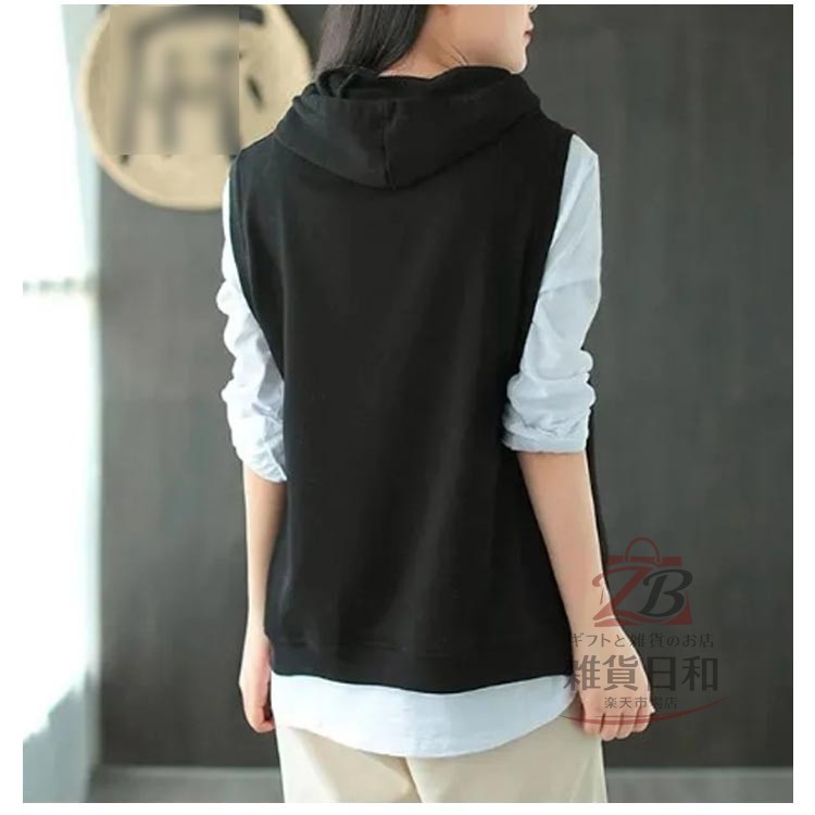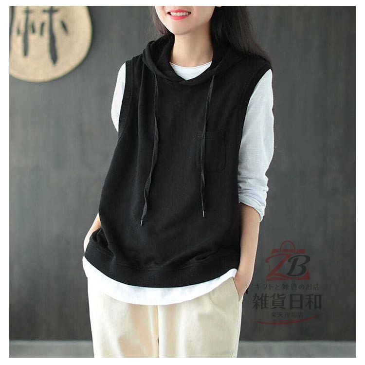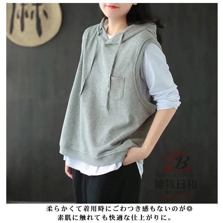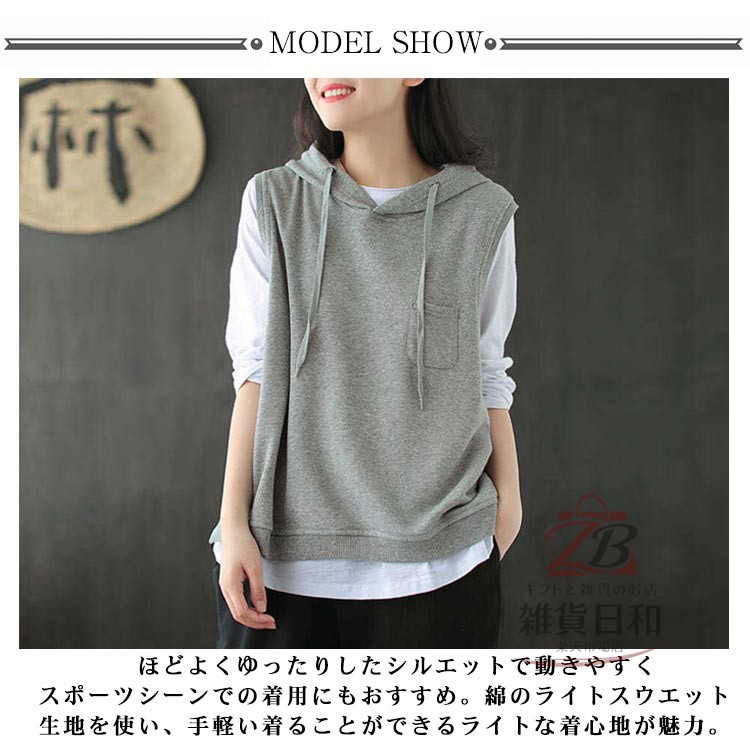 フード付きノースリーブパーカー レディース カットソーベストベスト