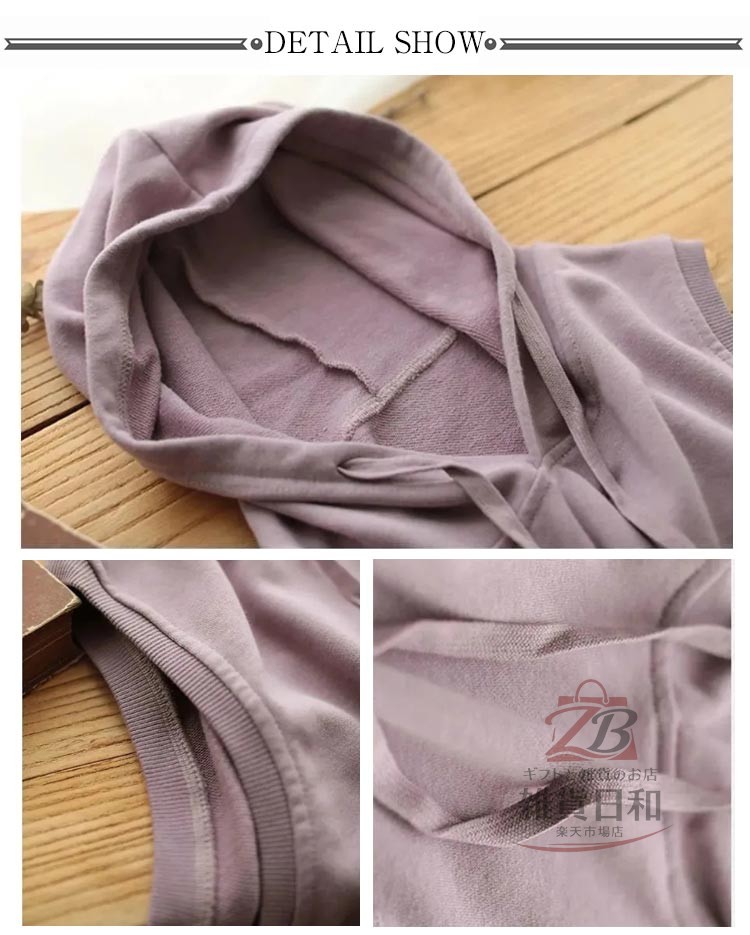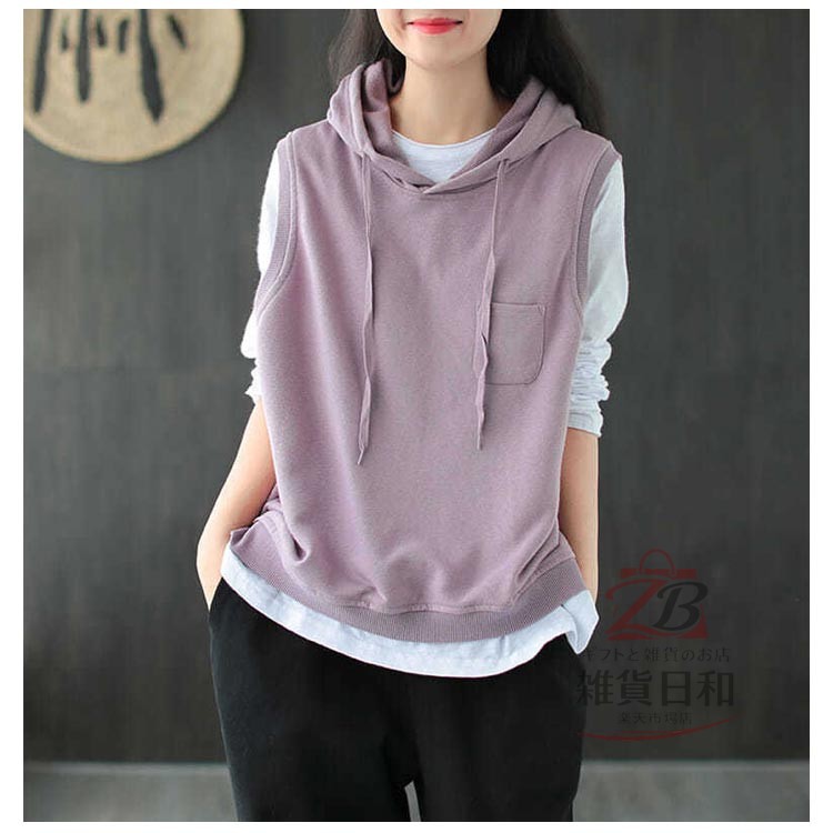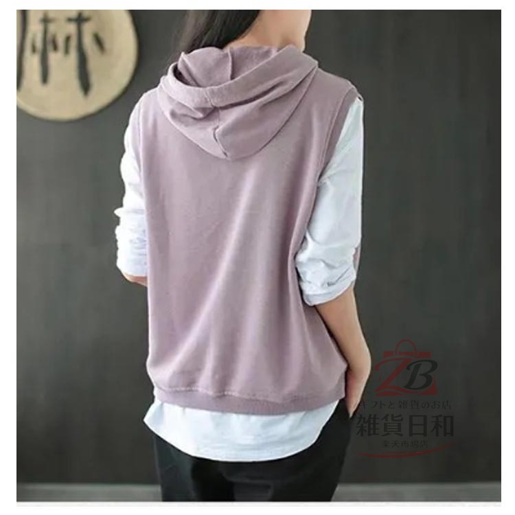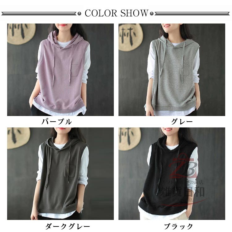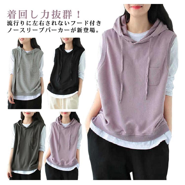 フード付きノースリーブパーカー レディ トップス ベスト 豊富な品揃え パープル グレー ダークグレー ブラック M L XL 2XL