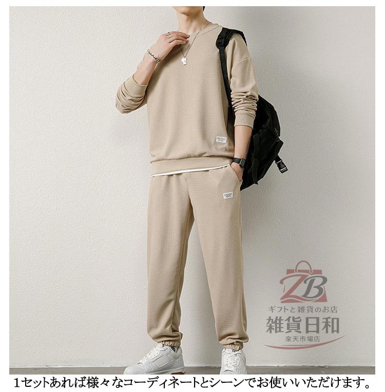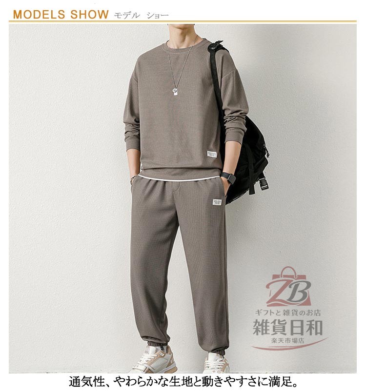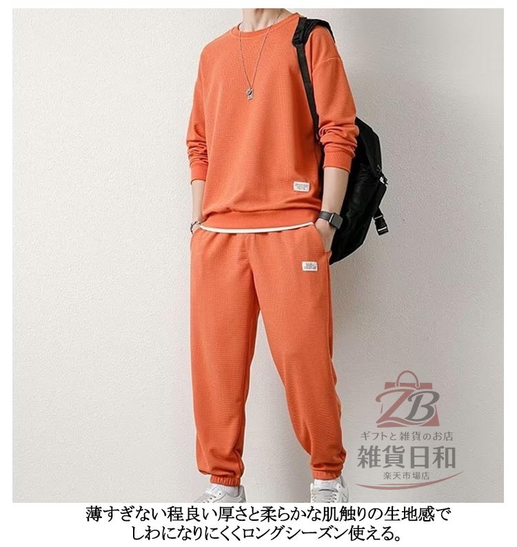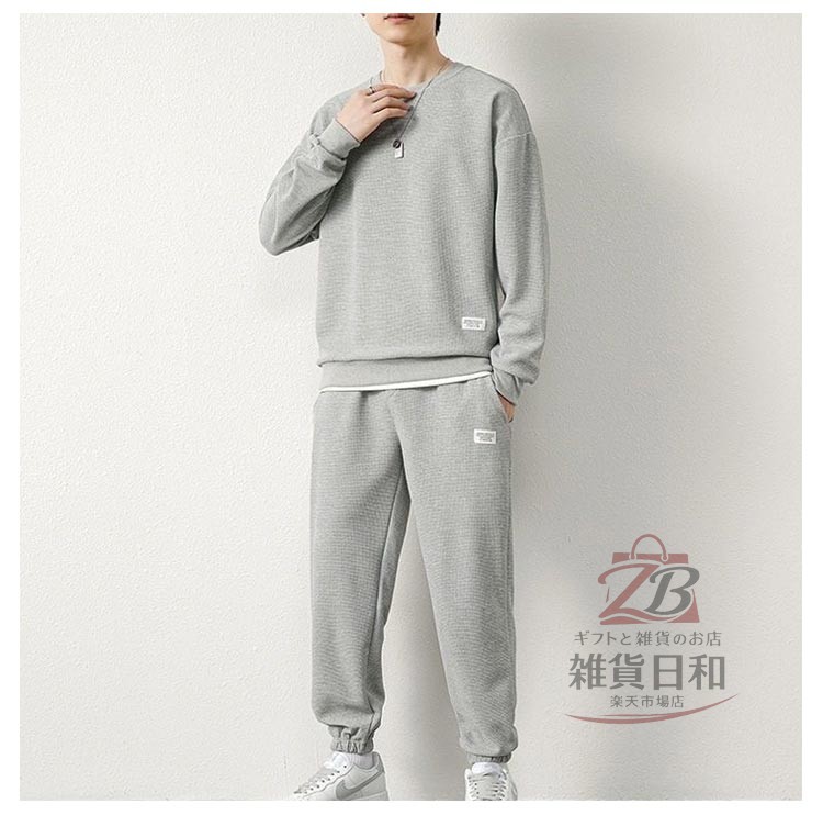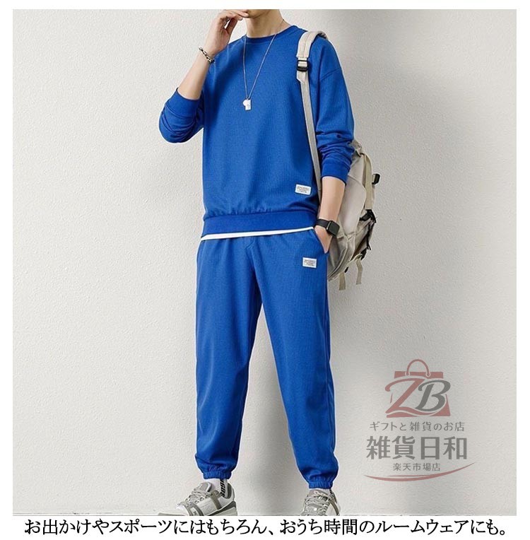 スエット上下セット メンズ ルームウェア クルーネック トレーナー パンツ 無地 スポーツウェア 長袖 秋冬 春 部屋着 運動着 外出着 秋