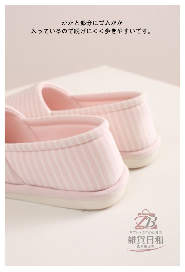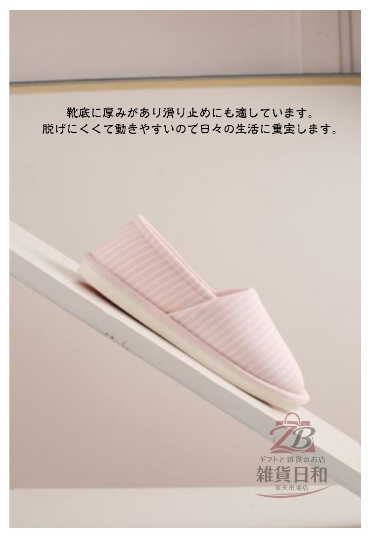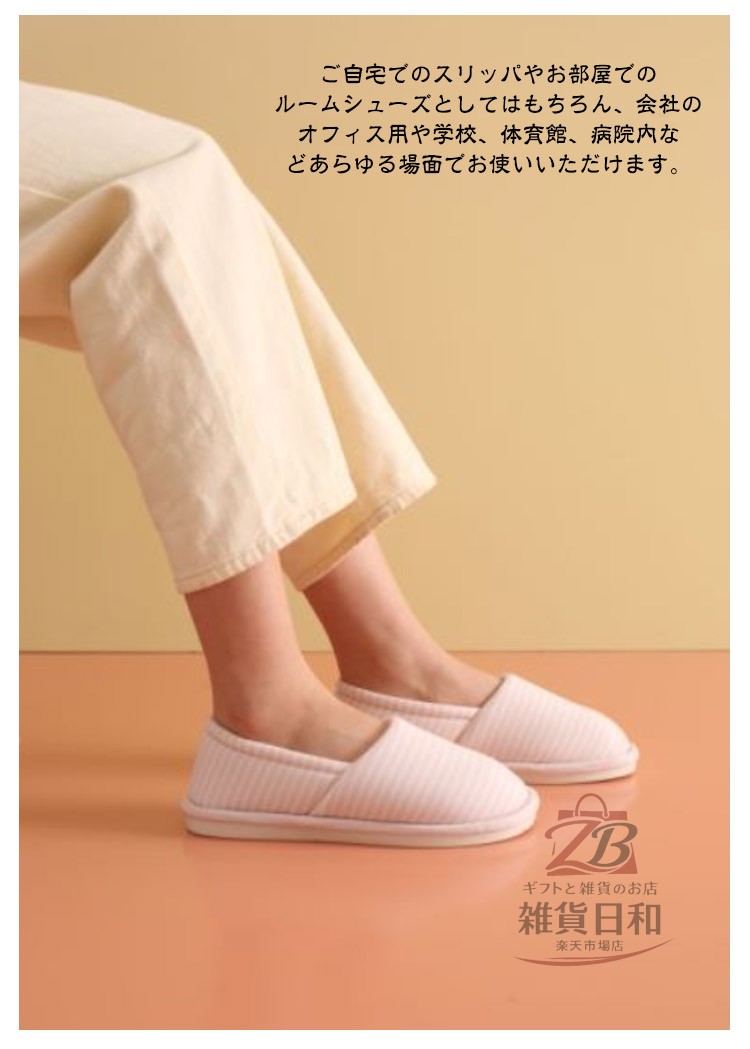 かかと部分にゴムが入っているので脱げにくく歩きやすいです。おしゃれでシンプルなデザインなので室内履きルームシューズとしてお家でのリラックスタイムに最適です。ご自宅でのスリッパやお部屋でのルームシューズとしてはもちろん、会社のオフィス用や学校、体育館、病院内などあらゆる場面でお使いいただけます。靴底に厚みがあり滑り止めにも適しています。脱げにくくて動きやすいので日々の生活に重宝します。色違いで持っておきたい1品。