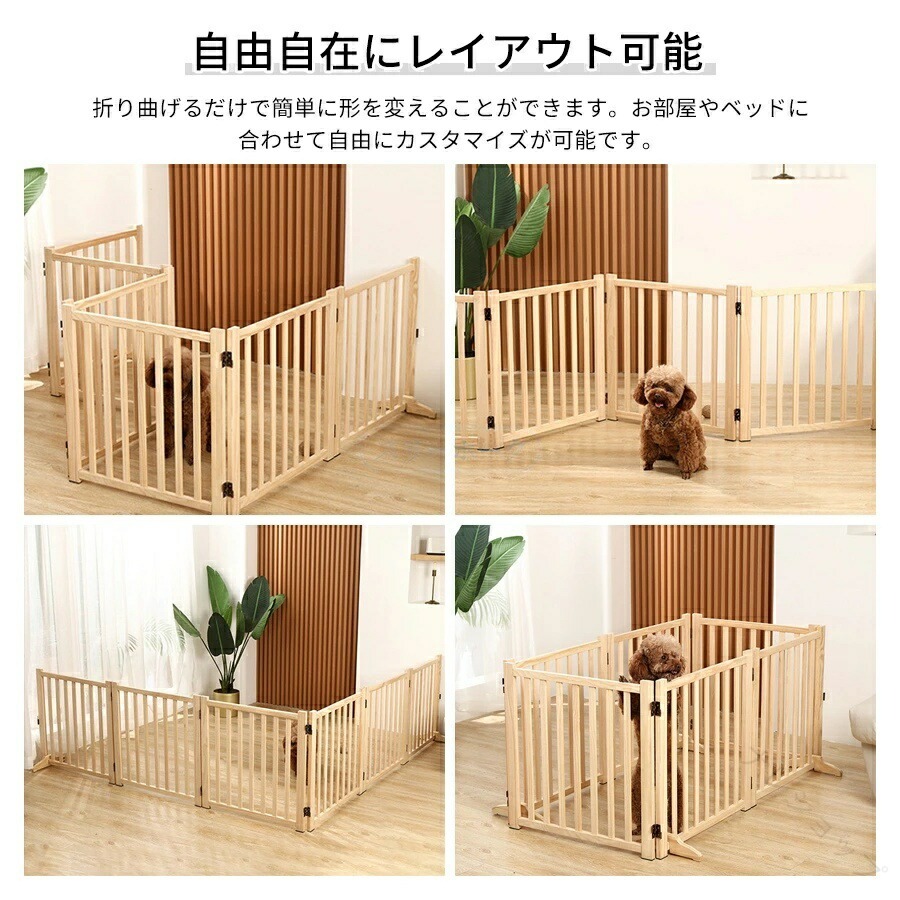木製 ペット ゲート 自立式 ドッグ 折りたたみ 折り式 バリア フェンス バリケード 脱走防止 飛び出し防止 安全 柵 犬 用 家用 置くだけ 階段 家具 ゲ 戸口