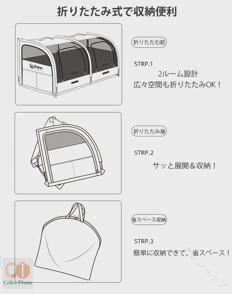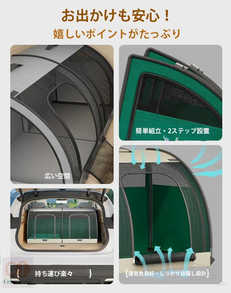 【商品サイズ】:100×50×50cm(※多少の誤差がございます) ・【広々設計で大型犬&多頭飼いもOK!】猫が喜ぶトンネル型デザイン。猫トイレも余裕で置ける広さで、2頭以上でもゆったり快適!大型犬にも安心して使えます。 ・【折りたたんでスッキリ収納、持ち運びもラクラク!】使わないときは折りたたんでコンパクトに。持ち手付きだから、まるでバッグのように持ち運びも簡単・ ・【ほとんどの車種に対応可能!】軽自動車からSUV、トラックまで幅広く対応。後部座席にしっかりフィットして快適なドライブが楽しめます。 ・【通気性抜群&安心のメッシュ構造】通気性の高いメッシュを採用。エアコンの風もしっかり行き届き、中の様子も見えて安心です。 ・【車でもおうちでも使える万能シート】ドライブ中はもちろん、自宅では簡易ペットハウスや猫のトンネルおもちゃとしても大活躍。1つあれば使い方いろいろ・