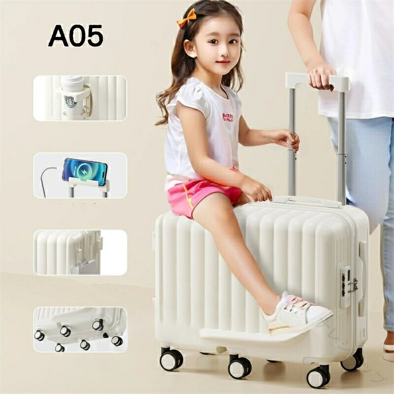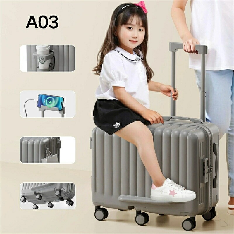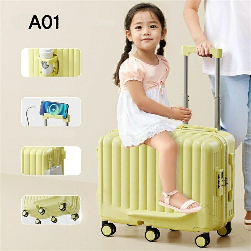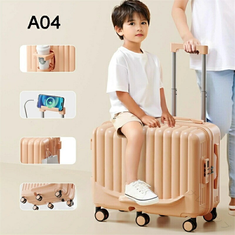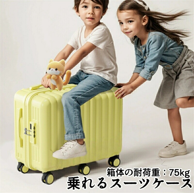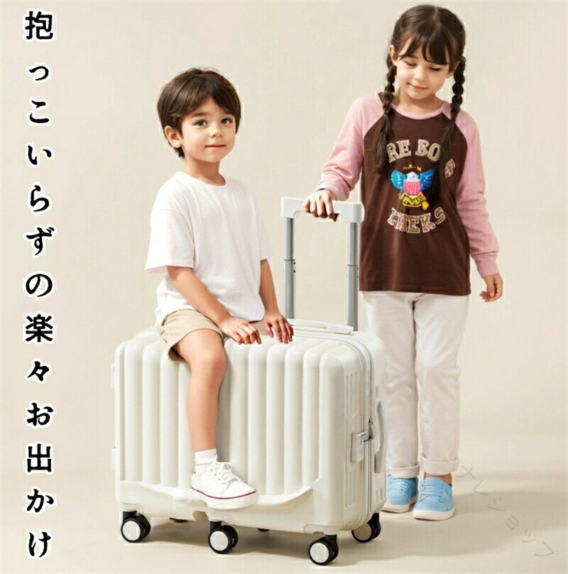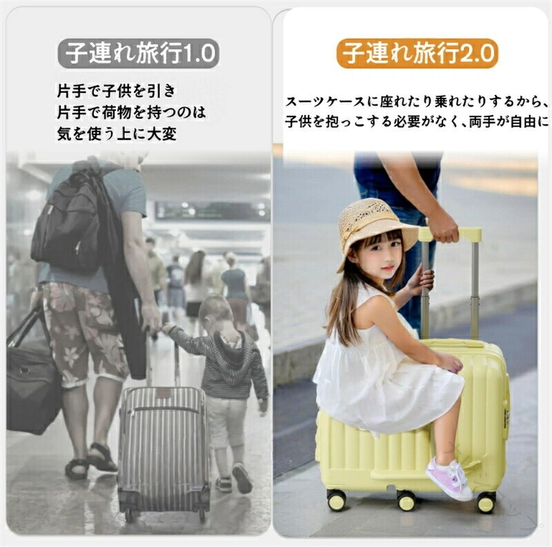 スーツケースに座れたり乗れたりするから、子供を抱っこする必要がなく、両手が自由にお子様を乗せてスムーズに移動できるキャリーケース。その上、ベビーカーの代替品と子供暇つぶしのおもちゃとしても利用可能です。旅行を快適に楽しくさせる秘密!子供も楽しく自分の物を片付けられます。耐久性に優れた双輪キャスター、スムーズな滑りを実現しながら、360度の自由回転もできます。タンワンプッシュで身長や利用シーンに合わせて3段階調整ができます。