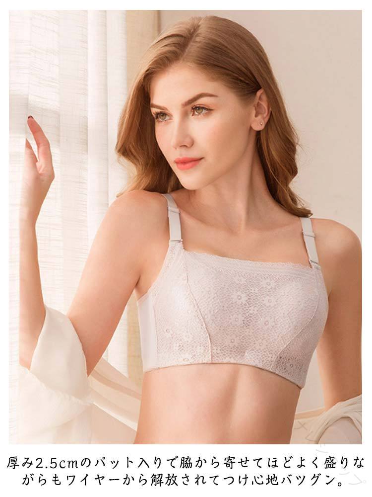 チラ 見え 防止 レース 付き ブラジャー ブラ 盛れる 谷間 ブロック 脇肉 ノンワイヤー 見せ スッキリ はみ肉