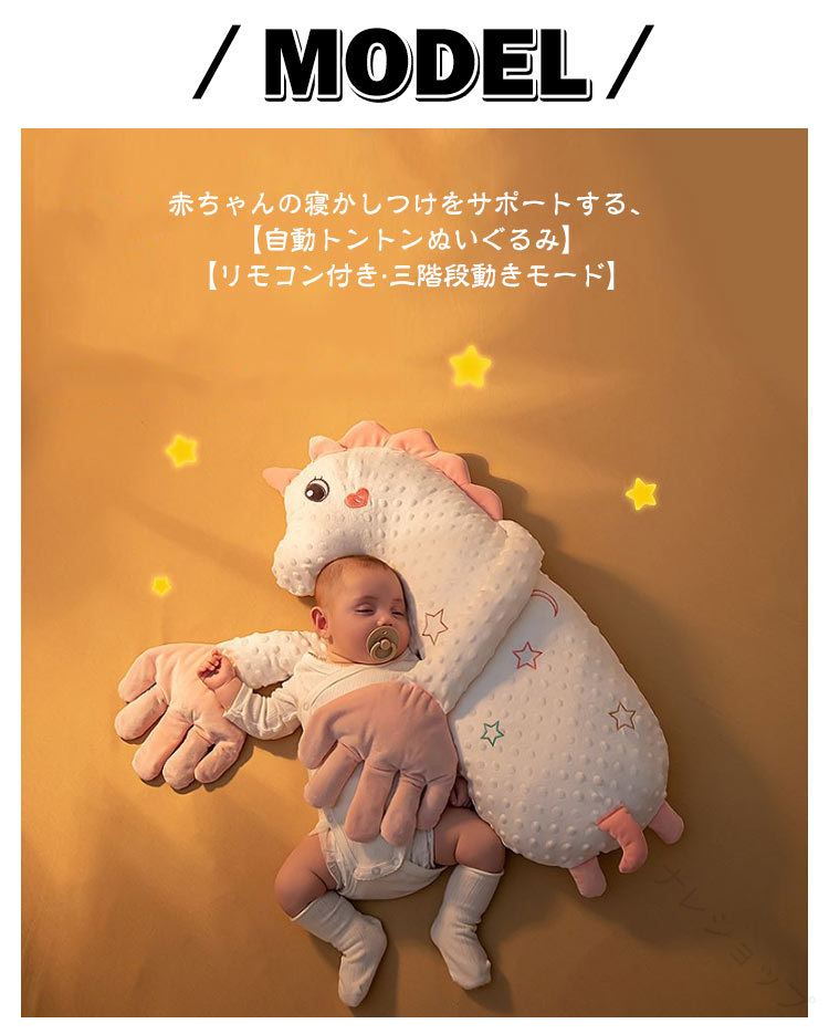 .赤ちゃん 用 の 自動 トントン ぬいぐるみ クッション と ベビー まくら は 安眠 と 寝かしつけ に 最適 です。指 が 動く 機能 で 吐き戻し 防止 や 夜泣き 防止 に 効果 が あり 新生児 から 幼児 まで 幅広く ご 使用 いただけます。安心感 を 与え ぐっすり 眠る 環境 を サポート します。。