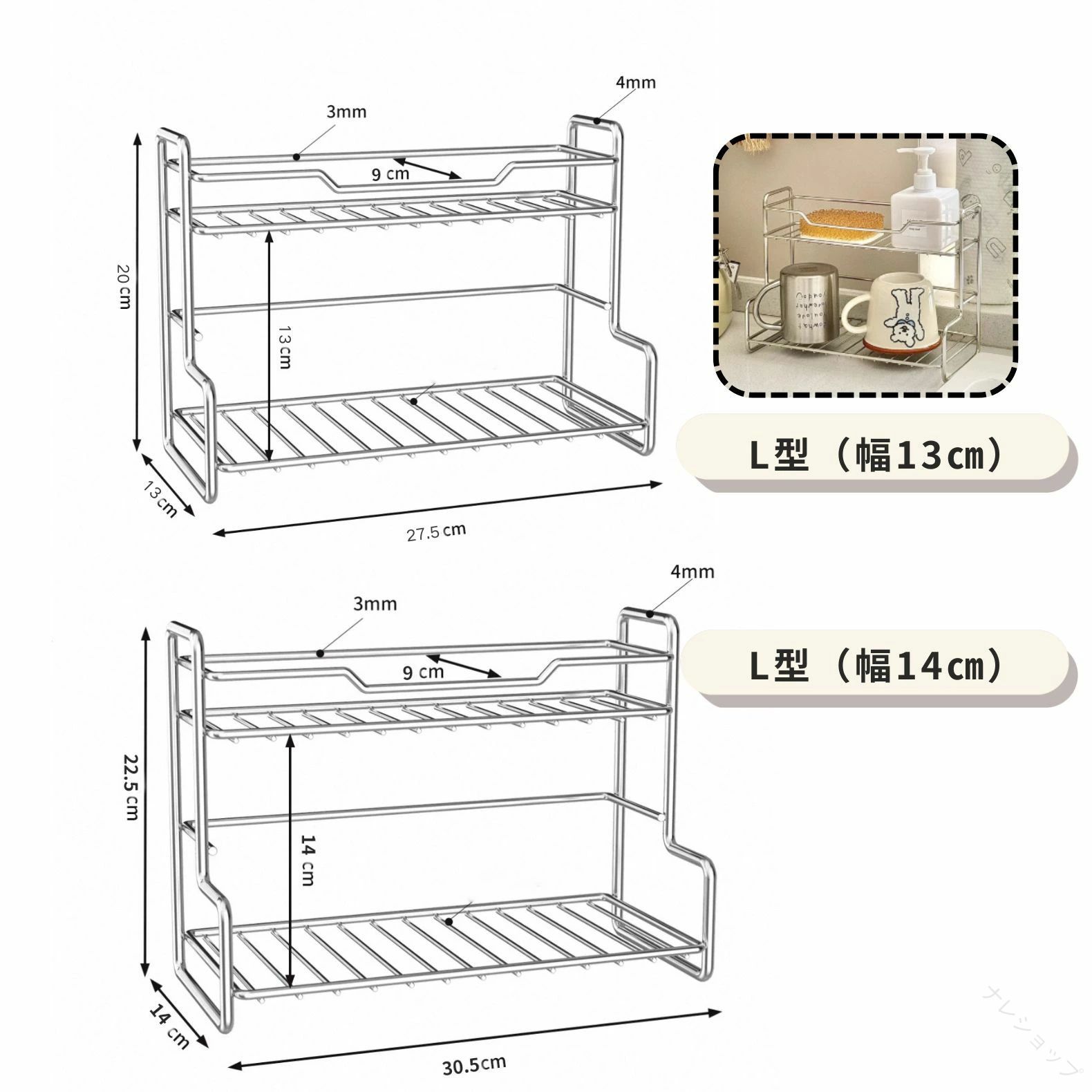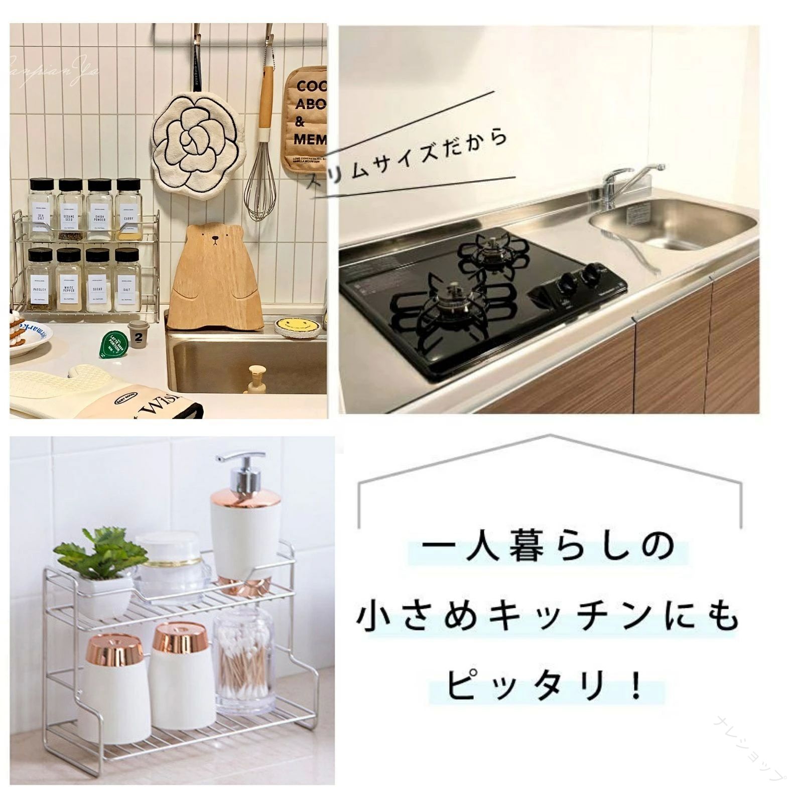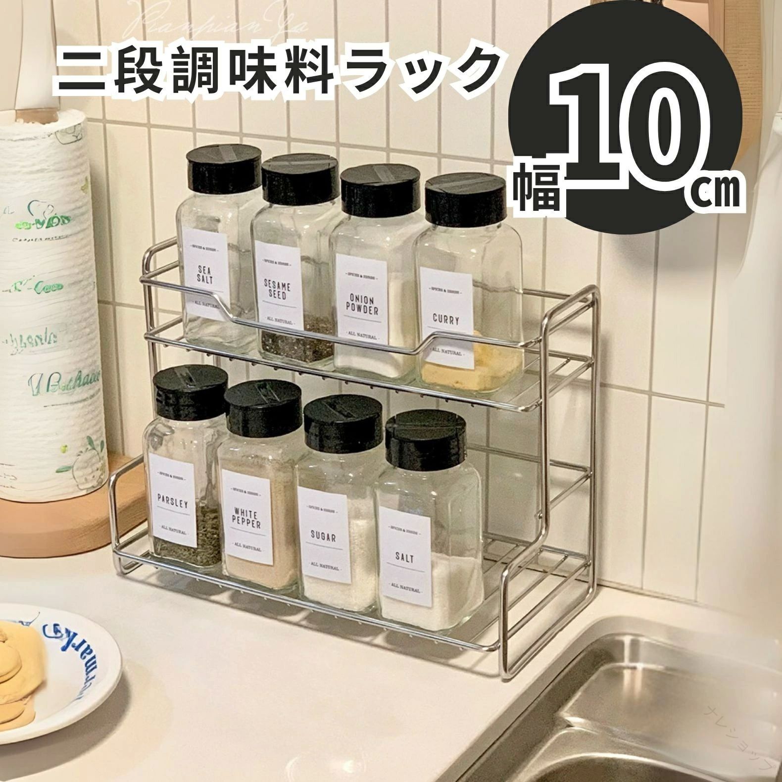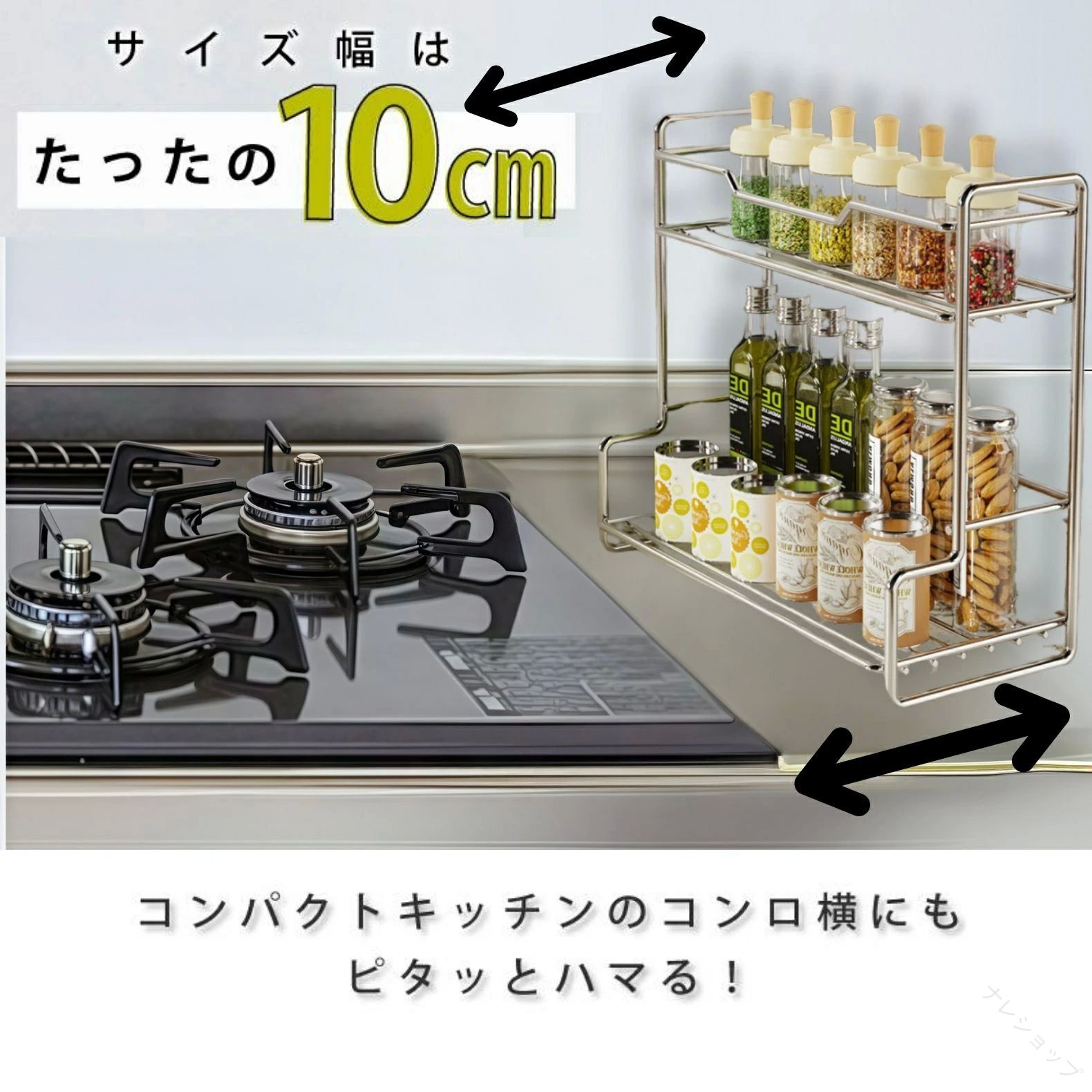 10cm幅の超スリムキッチンラック キッチン空きスペース活用2段調味料収納ラック 幅10~16cm対応 キッチンスリム収納棚 コンパクト設計で省スペース