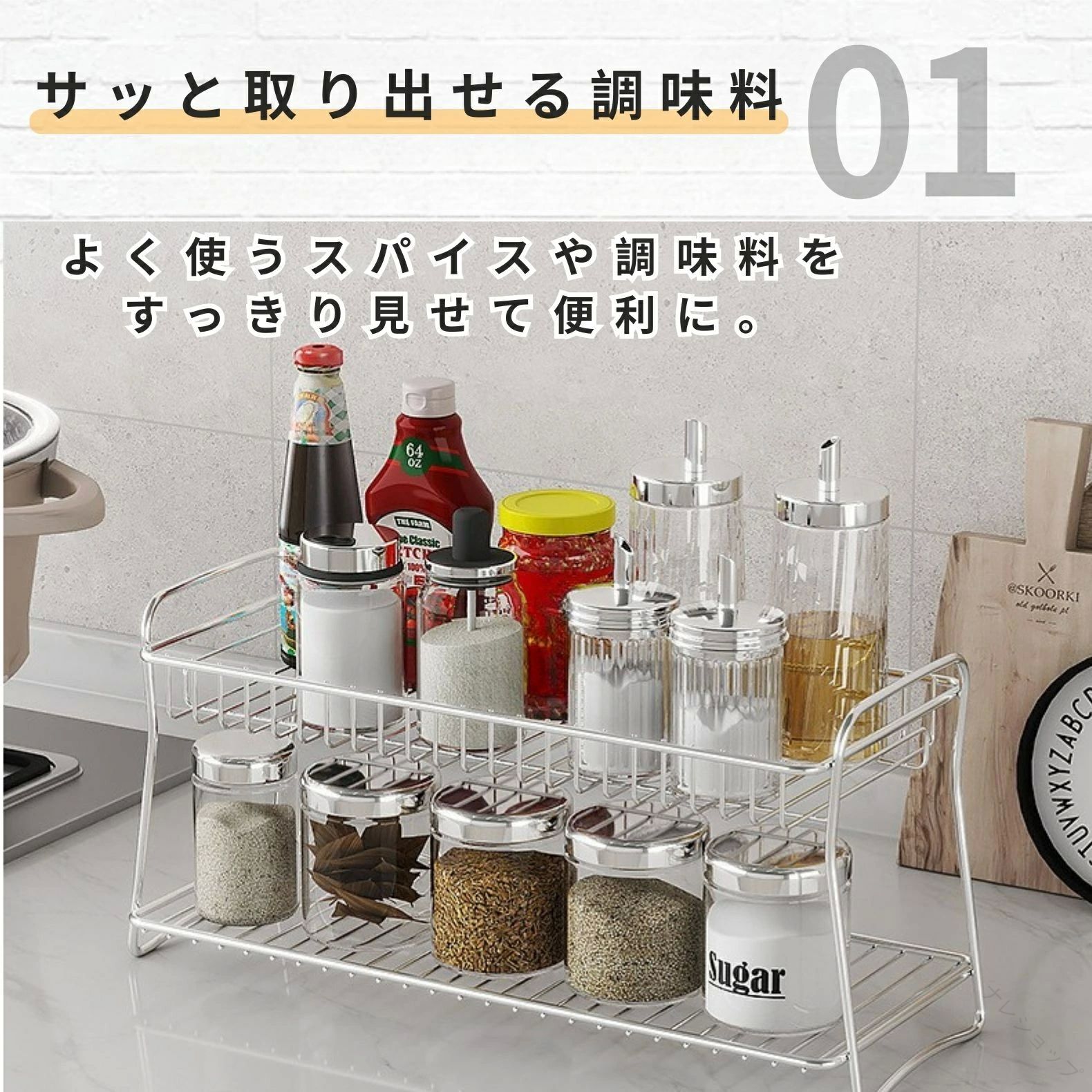 コンロ横の調味料が散らかって困っている 油はねやホコリから調味料を守りたい 狭いキッチンでもスッキリ収納したい 洗面所で化粧品やスキンケア用品を整理したい マグネットでカスタマイズできる収納が欲しい お手入れがラクな調味料ラックを探している 《設置例》 キッチン :コンロ横に設置して調味料を一元管理 洗面所 :化粧水やヘアアイロンをすっきり収納 オフィス :文房具や小物を整理 → たった10cmの薄型設計で、どこにでも置ける便利さ! 引き出し式よりも 取り出しやすく、見た目もスッキリ した収納を実現 調味料を使うたびにいちいち引き出しを開ける必要がなく、 サッと手に取れる便利さ が特徴です!