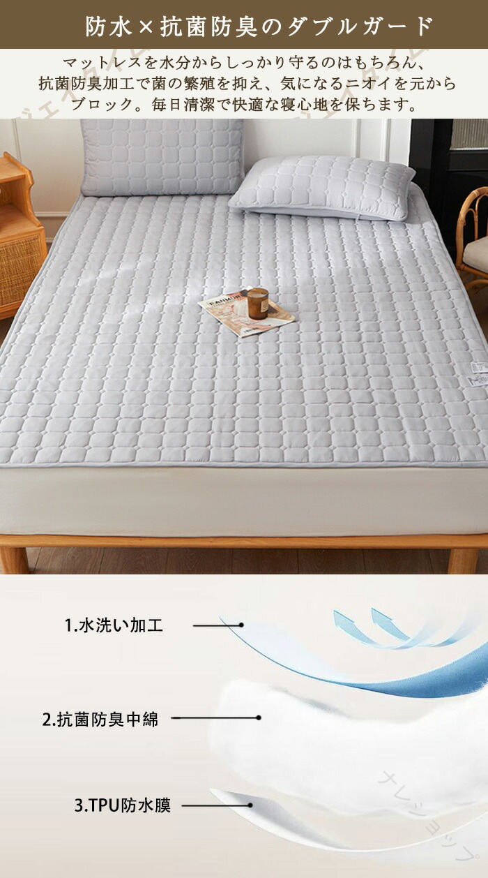 商品名:ベッドパッド 防水 敷きパッド 防水シーツ 通気性 洗える シンプル セミシングル シングル セミダブル ダブル ワイドダブル キング ワイドキング マットレスカバー ベッドシーツ おねしょパッド 介護 ペット 赤ちゃん 子供 寝具 オールシーズン