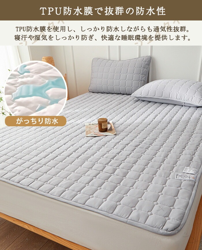 .ベッドパッド 防水 シーツ は洗える 通気性 に優れ シンプル なデザインで セミシングル から ワイドキング まで豊富な サイズ展開をもちます。おねしょパッド としても使え 介護 用 や ペット 用 赤ちゃん用 寝具 としてオールシーズン快適にご利用いただけます。。