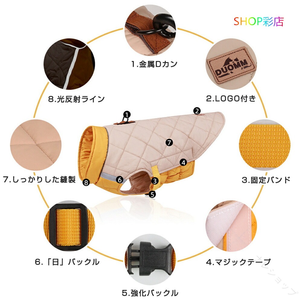 .秋冬 用 の 犬 服 は 背中 開き の ハーネス 一体型 で 小型犬 中型犬 大型犬 に 対応 し、マジックテープ で 着せやすい ボア ダウン ジャケット アウター です。暖かく 快適 な 着心地 で 愛犬 の 寒さ 対策 に 最適 です。。