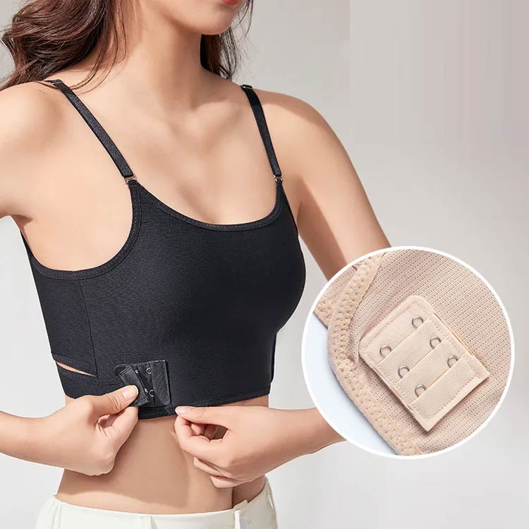 【調節可能な】調節可能な2段3列のホック、お好みのサイズに胸をつぶすことが可能、つけ心地に応じて最適な状態に微調整できますので、便利で実用性も高いです。
