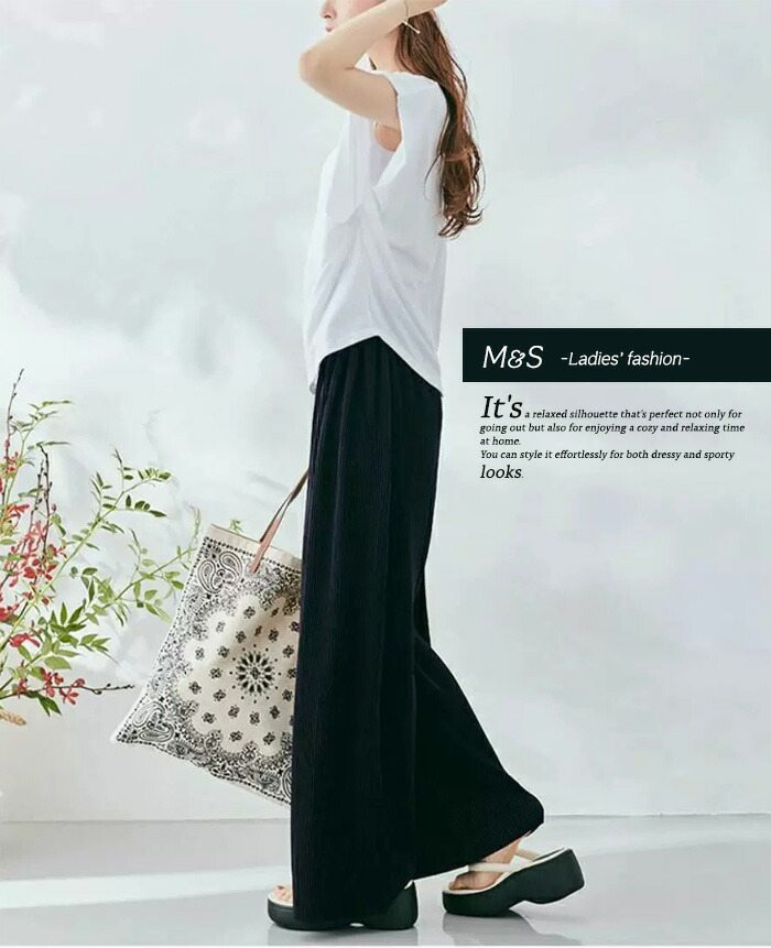 【関連キーワード】パンツ レディース セルフカット 切れる プリーツ 光沢感 縦ライン 高見え 高身長 低身長 リブパンツ ワイドパンツ イージーパンツ 裾カットOK ウエストゴム リラックスパンツ ボトムス 大きいサイズ 体型カバー 春 夏 M&S エムアンドエス 10代 20代 30代 40代 50代 60代 春 夏 お洒落 カジュアル かわいい かっこいい 涼しい 涼感 秋