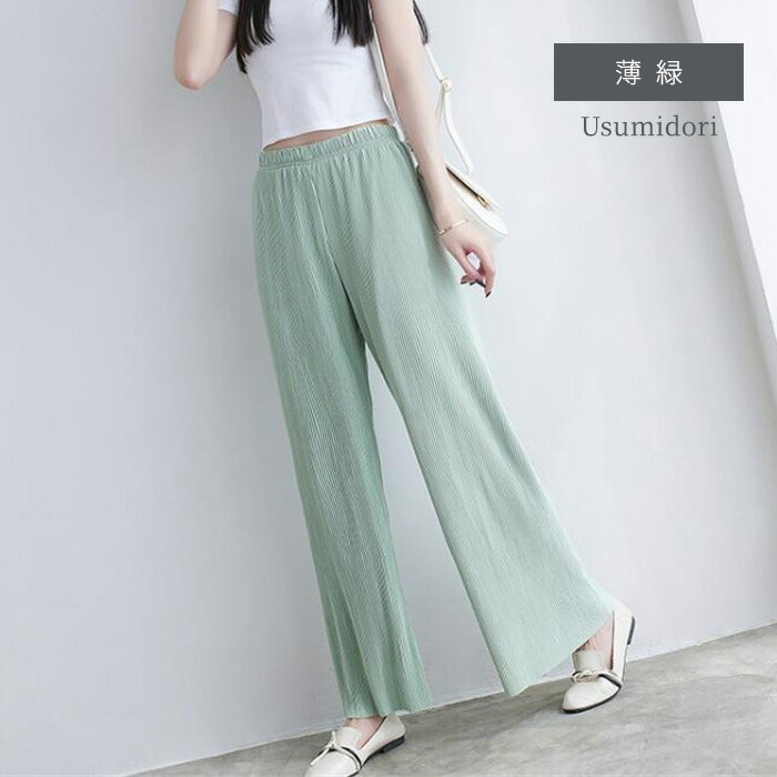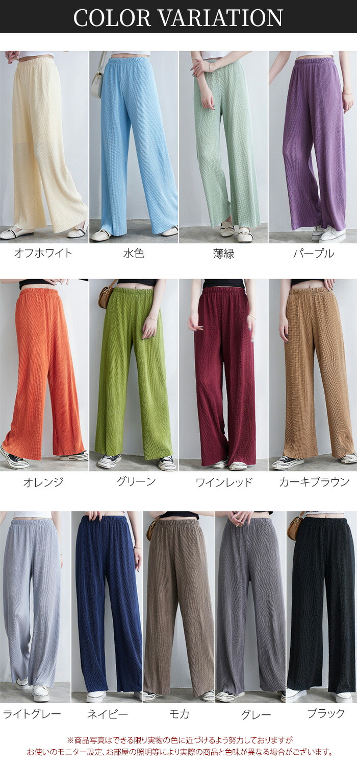 レディース パンツ ワイドパンツ プリ レディースファッション 続々登場 オフホワイト 水色 薄緑 パープル オレンジ グリーン ワインレッド カーキブラウン ライトグレー ネイビー モカ グレー ブラック