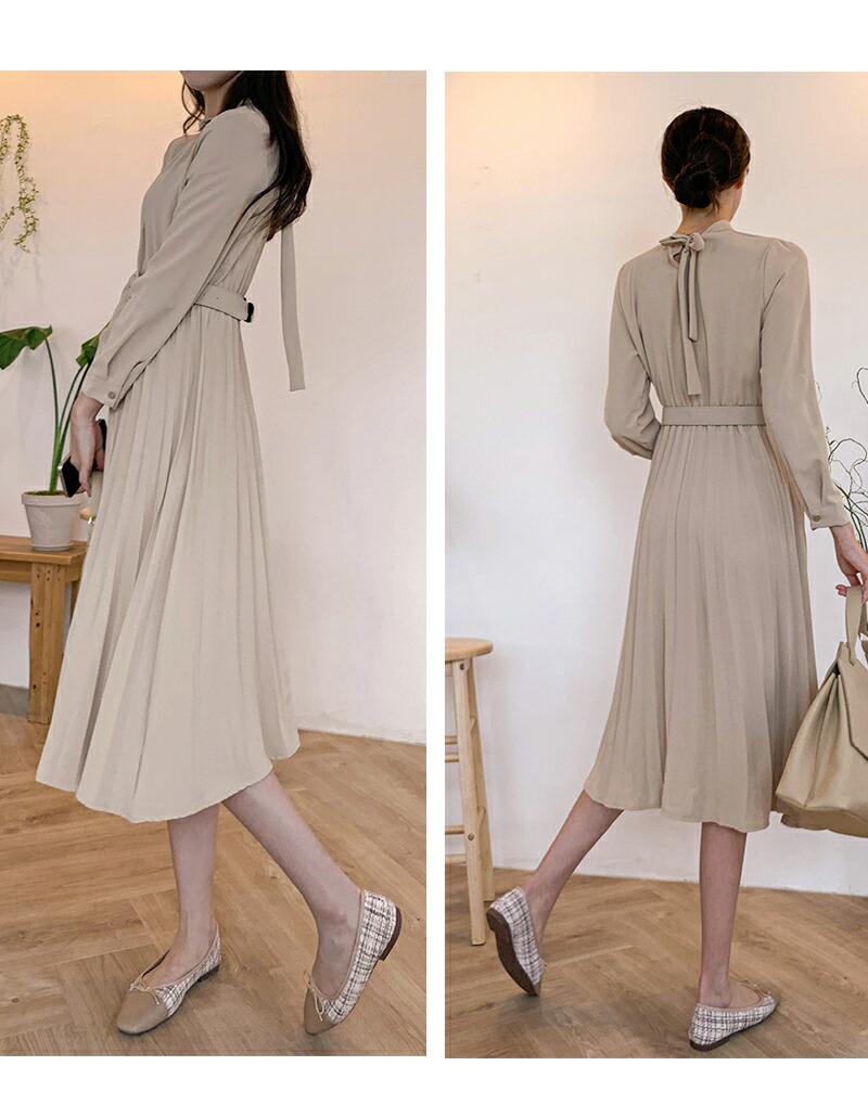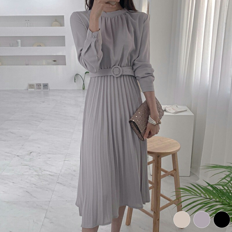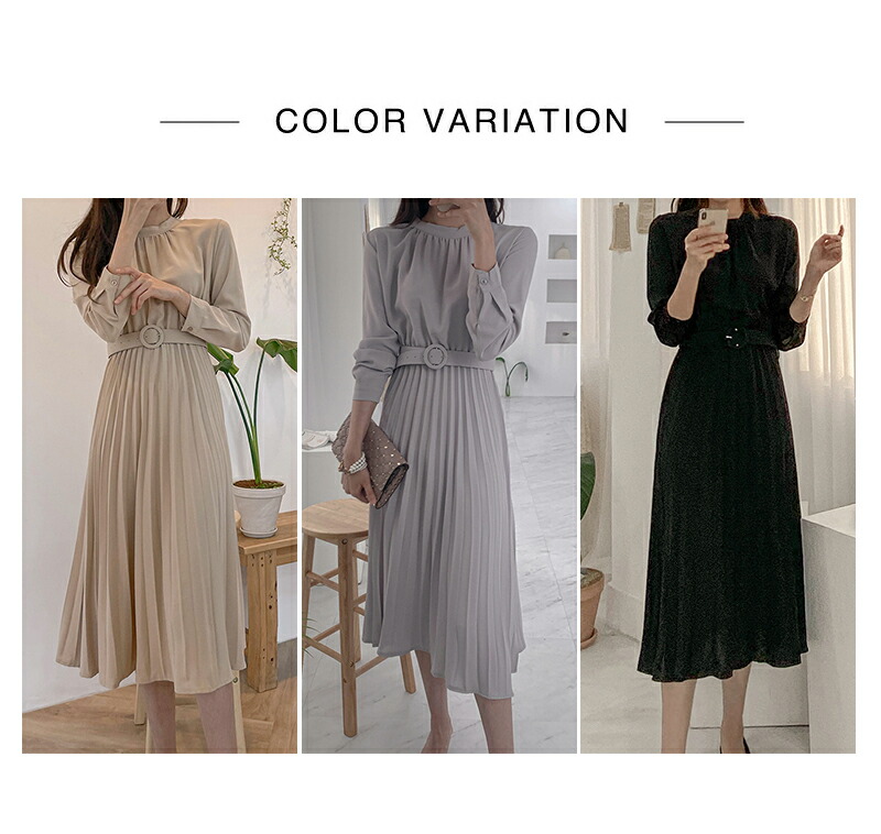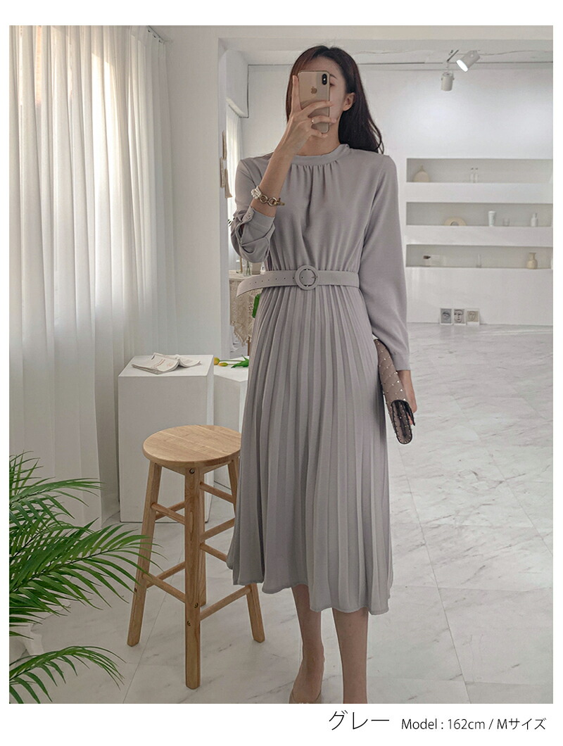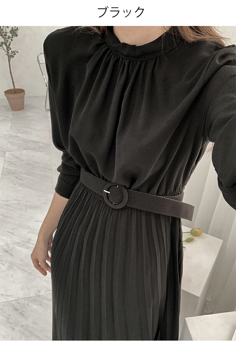 ワンピース 長袖 プリーツ プリーツワ ワンピース 新登場! グレー ブラック ベージュ