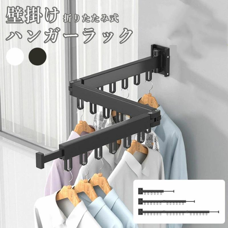折りたたみ式 壁掛け ハンガーラック 3サイズ 物干し 洗濯ラック 収納 洗濯 クローゼット 可動式 脱衣所 コンパクト 洋服 衣類 小物 ブラック ホワイト 取り付け 丈夫 折りたたみハンガー 室内干し 部屋干し 物干し竿 梅雨対策 ウォールハンガー 頑丈 オシャレ