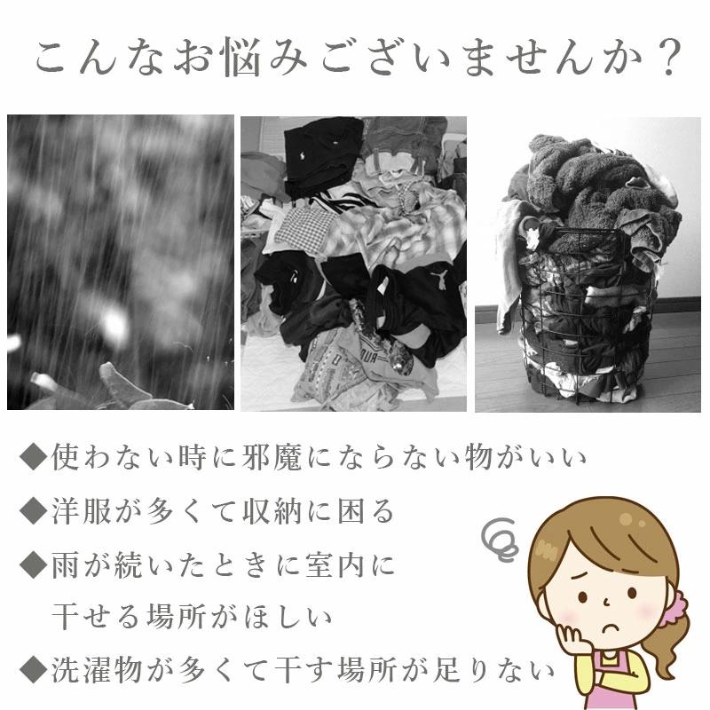 バルコニーやリビング、脱衣所などで洗濯物掛けはもちろん。キッチンの調理器具かけ、玄関のコート掛け、クローゼットに収納追加など様々な場所でお使いいただけます。