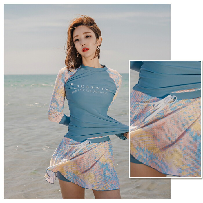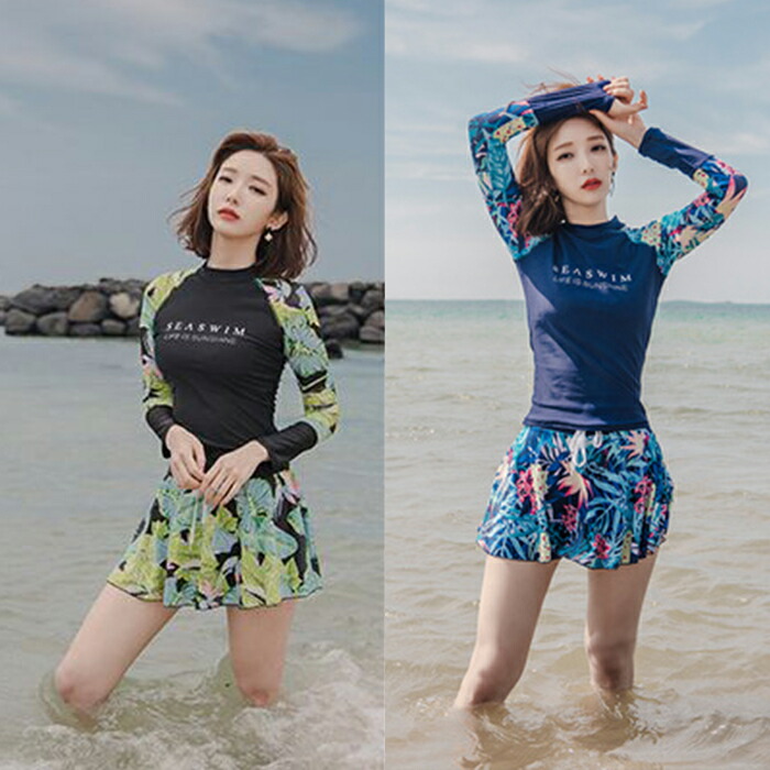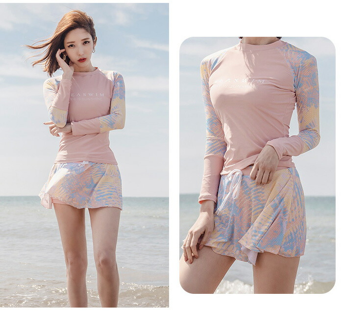 水着 レディース 体型カバー フィットネス水着 おしゃれ 競泳水着 スポーツウェア長袖 ラッシュガード UVカット ショートパンツ付き スカート 女性用 大人 みずぎ ビーチ ジム 温泉 運動 プール