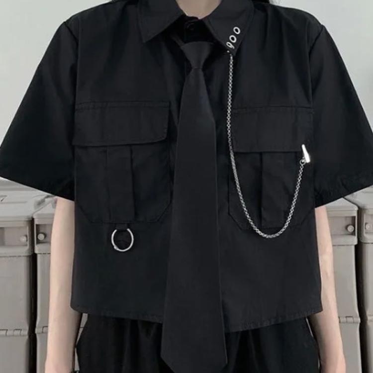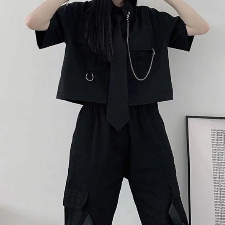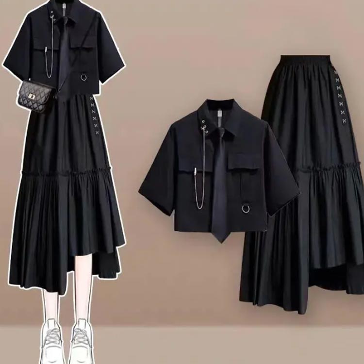 セットアップ ロングスカート 半袖シャツ ダンス 衣装 スカート ロング 半袖 秋冬 サブカル ネクタイ 上下セット 地雷系 ゆったり 夏服カジュアル ストリート系 JK制服 原宿系 学 チェーン付き