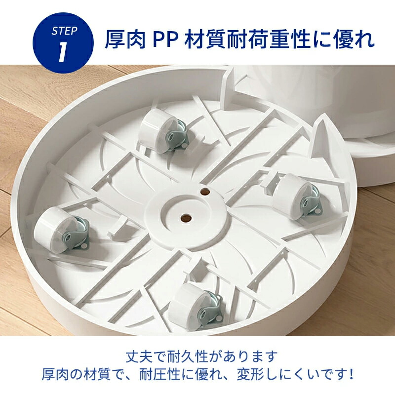 植木鉢の移動がスムーズで、排水や通気性にも優れた便利な「キャスター付き鉢台」。 プランターや植木鉢を簡単に移動できるだけでなく、ホワイトとブラックのシンプルで洗練されたデザインが空間を引き立てます。 サイズも豊富で、小さな観葉植物から大きな鉢植えまで幅広く対応。お庭や室内でのガーデニングライフを快適にサポートします。