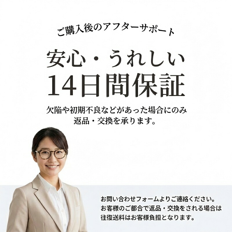 開封後の商品や、ご洗濯後の商品など、製品の品質の問題であれば、ご利用いただいてからのご変更や交換も対応しておりますので、ご安心ください。