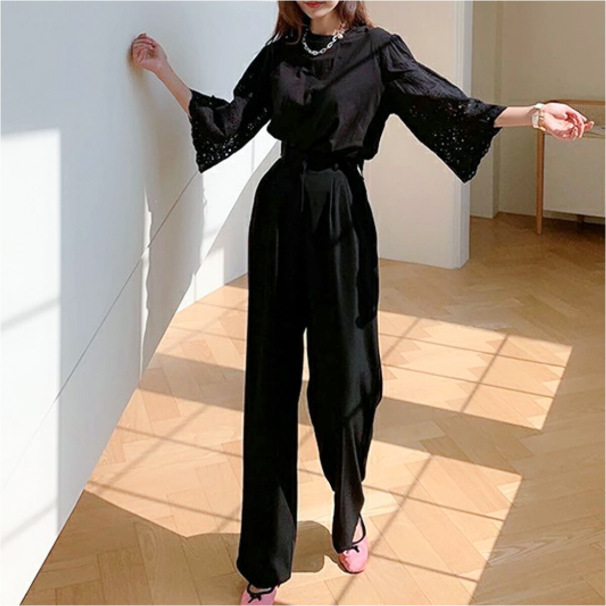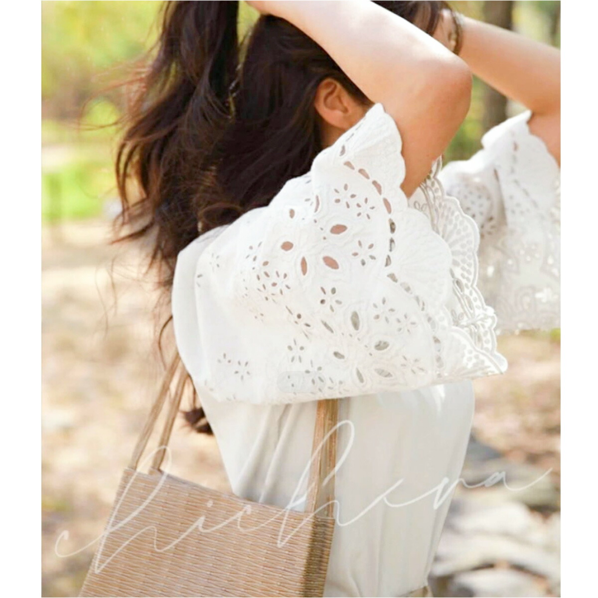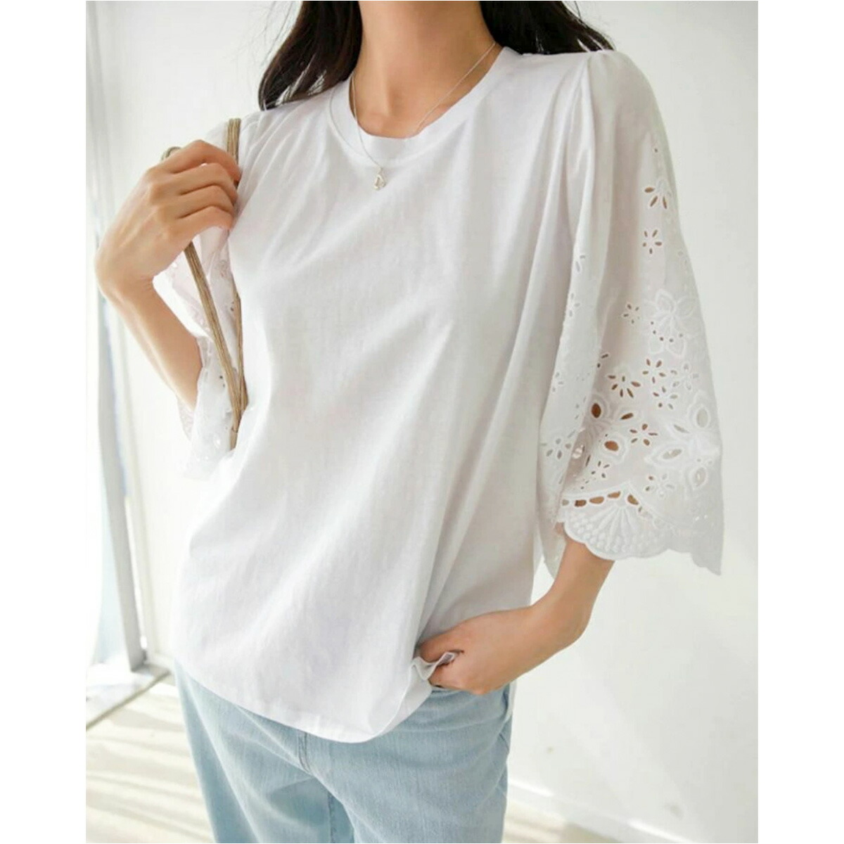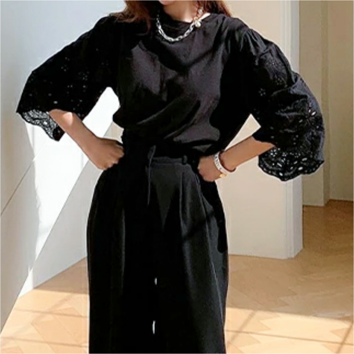 コットンレース フレアスリーブ プルオ トップス Tシャツ カットソー 特集 WHITE(ホワイト) BLACK(ブラック)