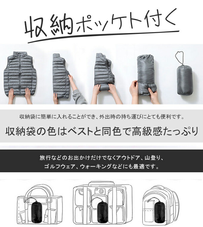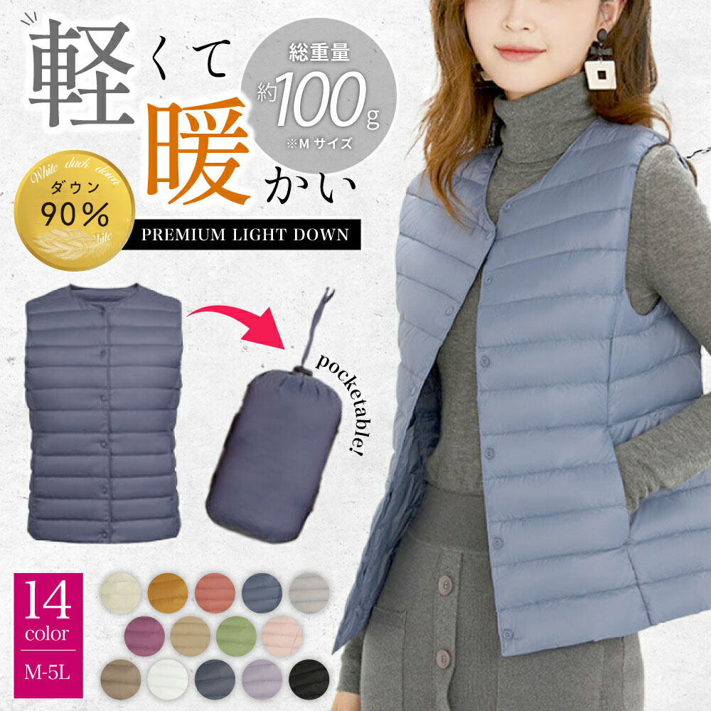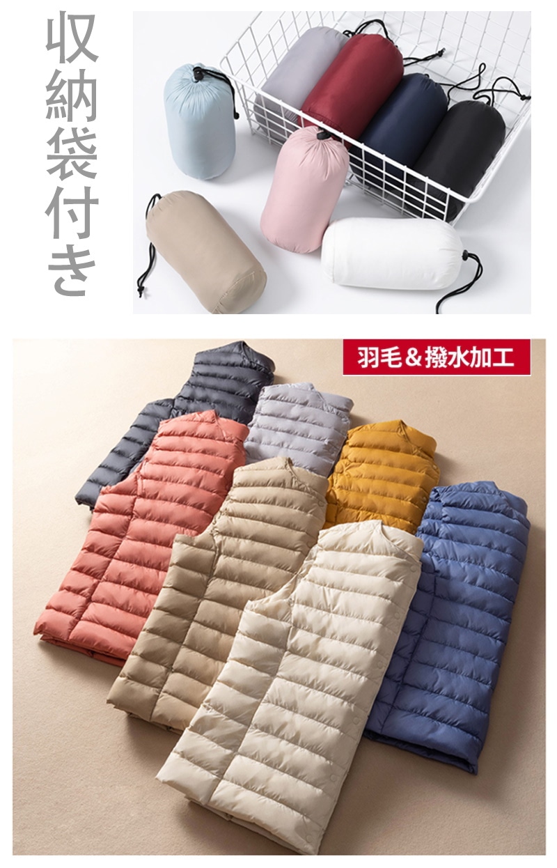 ダウンジャケット品質90ダウン ライトウェイトダウン ダウンベスト ダウンジャケット レディース ダウン 軽量 収納袋付 男女兼用 メンズ