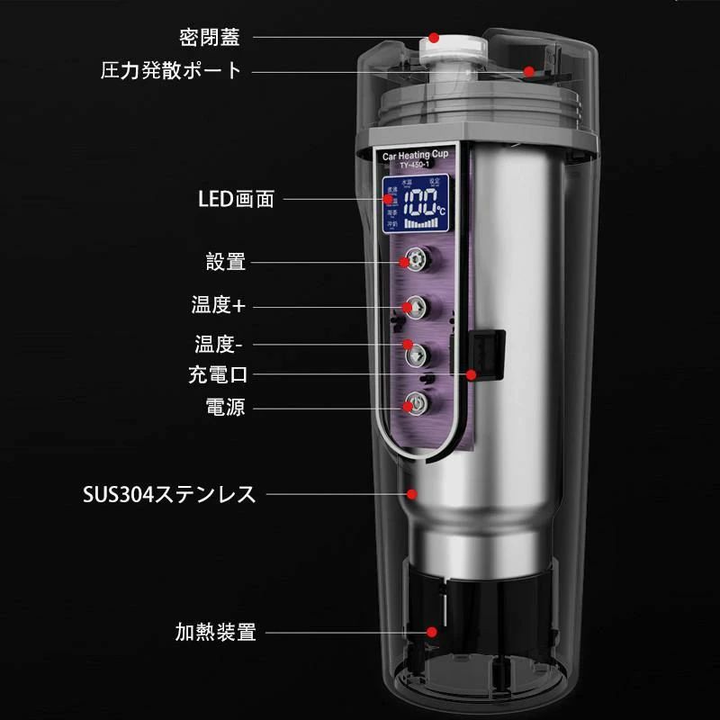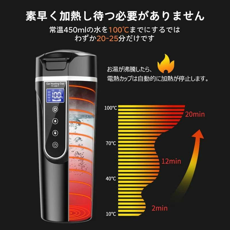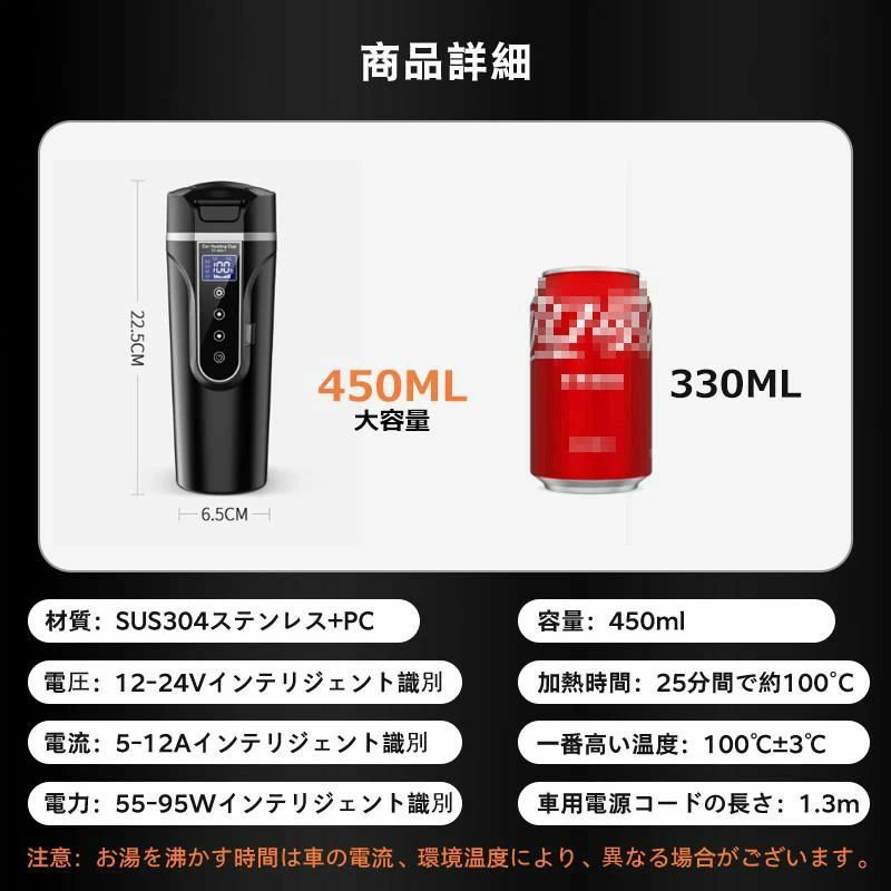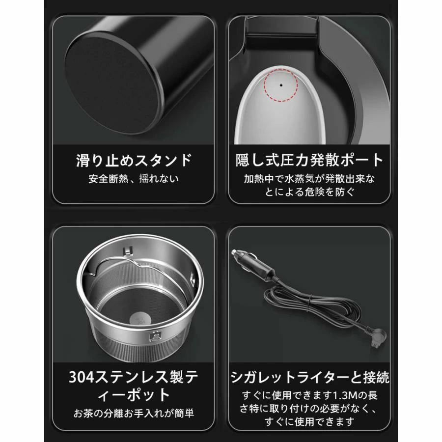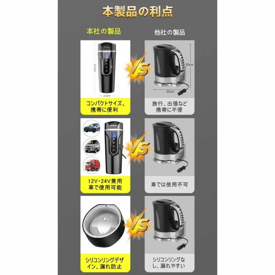 保温機能付き 500ml DC12V小型車 24V 電気ケトル トラック兼用 湯沸し器 自動加熱 ポータブ 30℃~100℃ 持ち運び 携帯