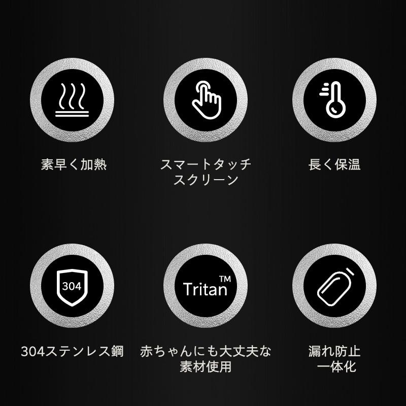 快速加熱:液晶温度表示部とタッチ式操作部を採用するので、40℃から100℃までの任意の温度を設定できます。沸騰保温お茶り粉ミルクの4つの定温モードがあります。コーヒー65℃、お茶55℃、ベビーミルク40℃、麺90℃も設定できます。25分以内で温度を100℃まで上げるので、お湯とかコーヒーを保温したリ、温めたりし、いつでも温かい飲み物が楽しめます