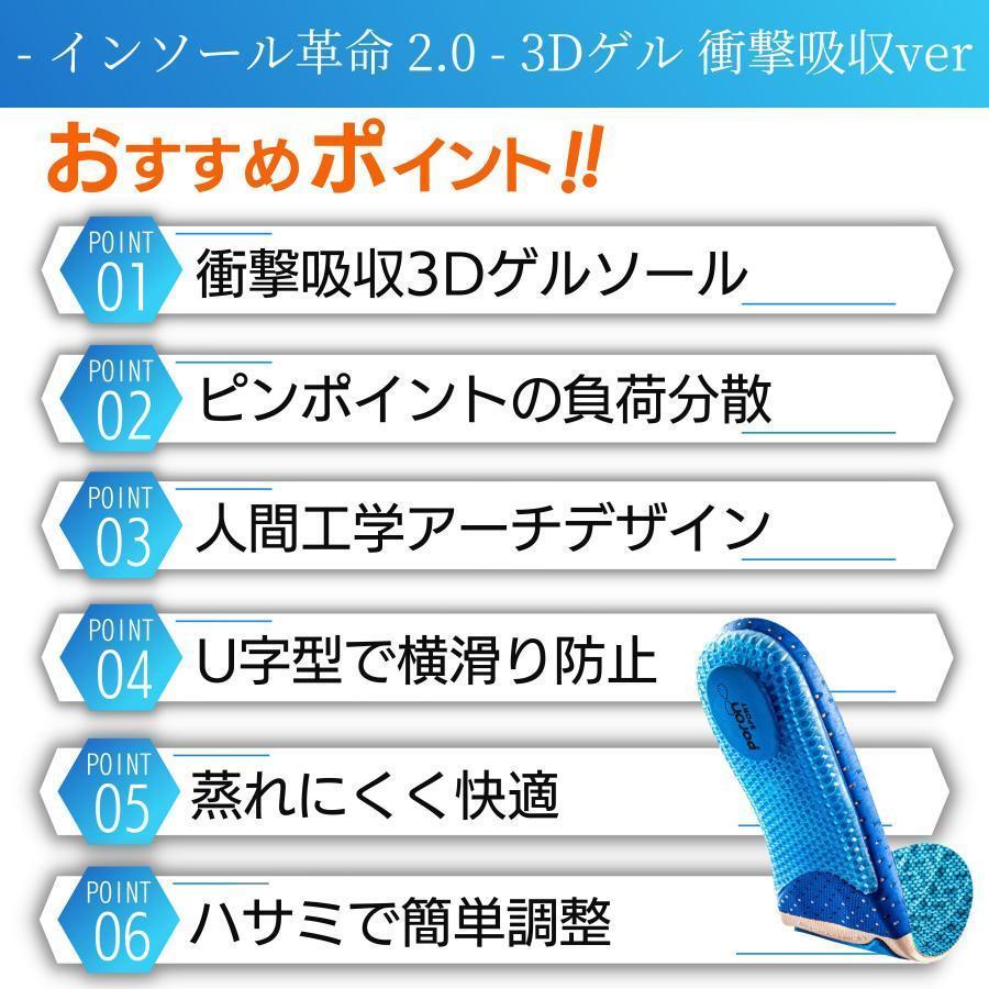 インソール 衝撃吸収 中敷き 疲れにく 靴 通販 3Dゲル+衝撃吸収 防臭含有+衝撃吸収 24・23cm 25・24cm 26・25cm 27・26cm 28・27cm 29-28cm